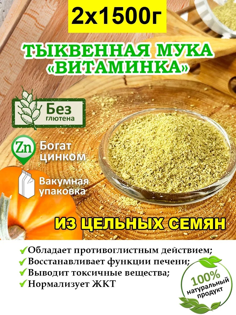 | Комплектация | Мука из семян тыквы 1500 грамм в вакуумном пакете - 1 шт |