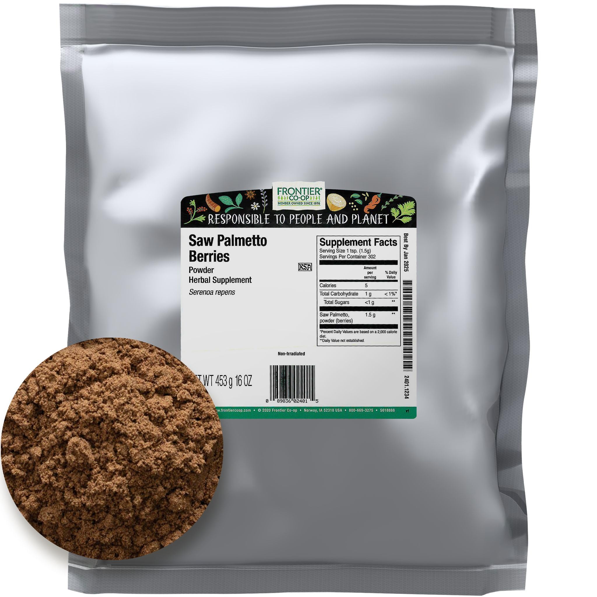 ABOUT US - We are Frontier Co-op. 50,000 member owners strong and a powerful force of good in the world. As an ethically committed herb and spice company, we are united by our mission to put people and planet before profits. COMMITTED TO PEOPLE PLANET - Our sustainable sourcing programs start with a commitment and investment in our growers. We support essential projects like education, medical infrastructure, freshwater initiatives, and sustainable farming practices. Through mutually beneficial partnerships, we are bound and determined to source ingredients ethically and responsibly. WHY BUY BULK – Shopping in bulk has numerous benefits – namely saving you money and helping protect the environment by reducing harmful single-use packaging waste. Our new bulk packaging is easily recyclable and will help keep over 2 million plastic containers and bags out of landfills every year. BEST USES - This powder is commonly used to promote prostate health in men. It can be incorporated into dietary supplements or taken as a natural remedy to support prostate function. SAW PALMETTO BERRIES POWDER - Frontier Co-op Saw Palmetto Berries Powder is a natural supplement derived from dark-purple to black berries. These berries are rich in fatty acids and phytosterols.