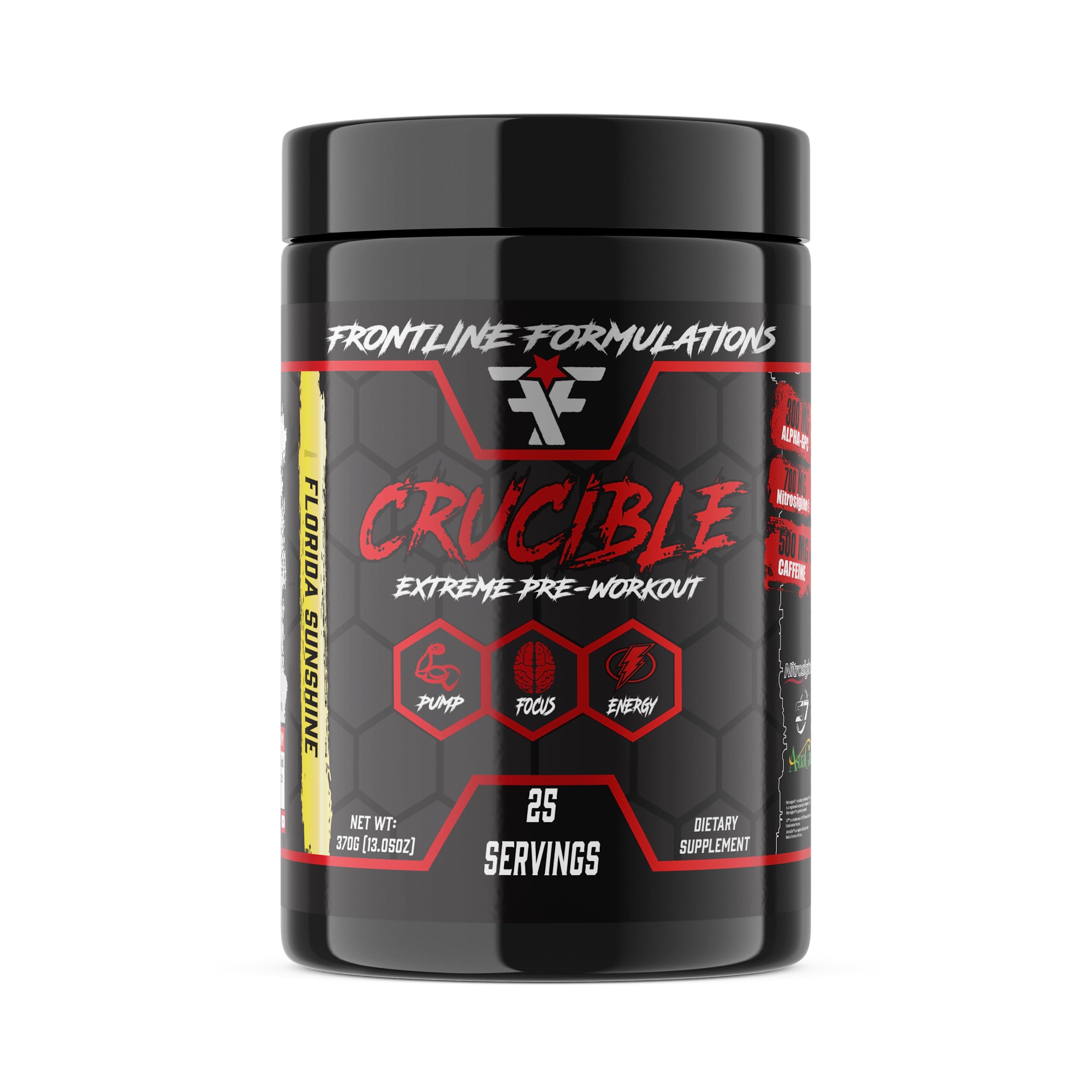 FRONTLINE FORMULATIONS Crucible Pre-Workout Powder Explosive Workouts Laser Focus High Stim Amazing Flavor Veteran Owned and Operated (25 Servings Florida Sunshine)