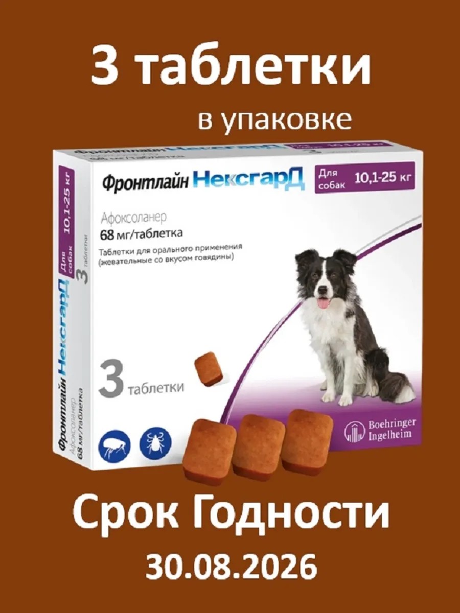 Фронтлайн Нексгард 3 таблетки 10-25 кг (срок 08 2026)
