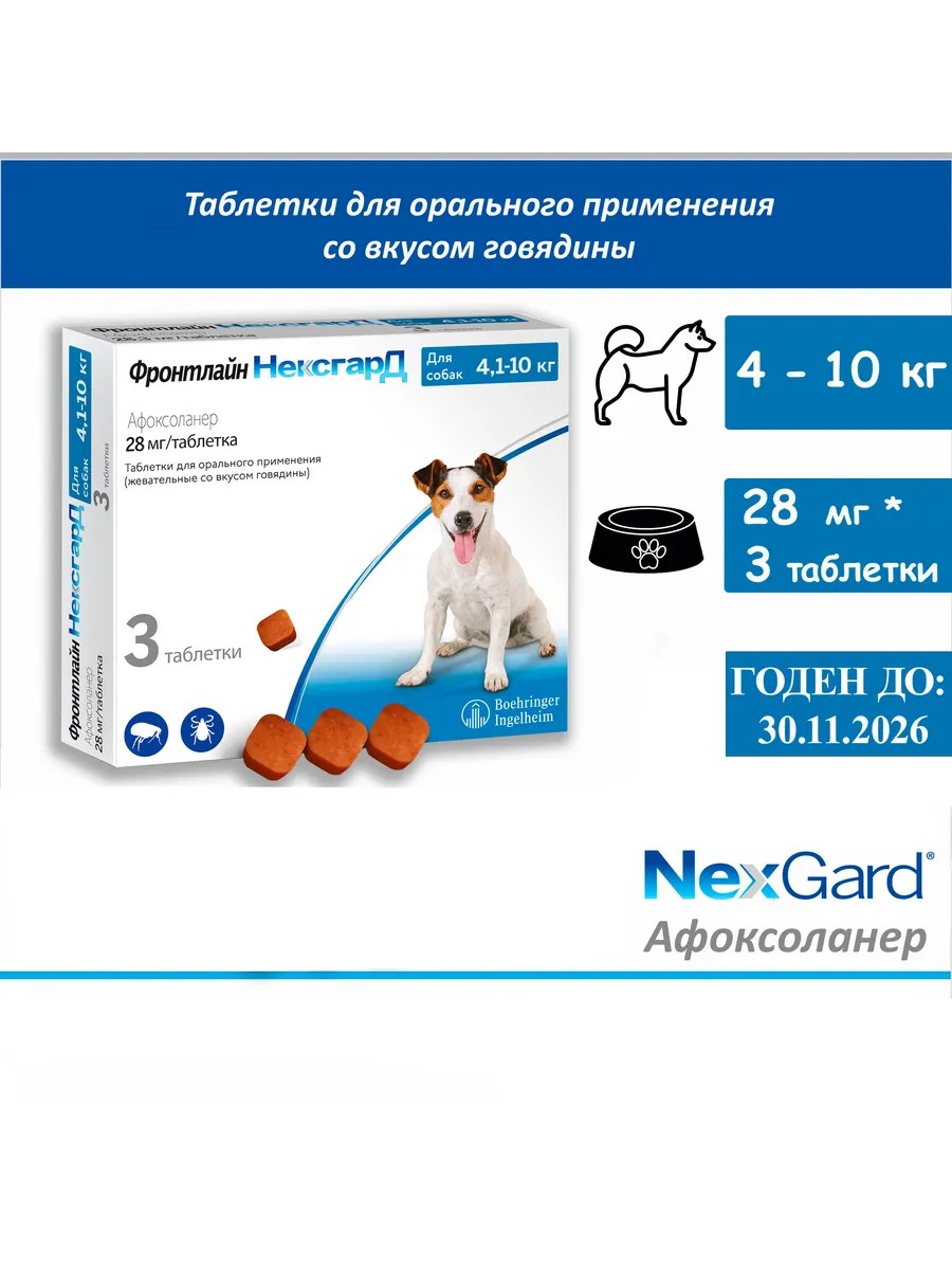 Представляем вашему вниманию жевательные таблетки Нексгард Фронтлайн (M) 28 мг, предназначенные для собак весом от 4 до 10 кг. Этот эффективный препарат справляется с клещами и блохами, обеспечивая надежную защиту вашего любимца. В каждую упаковку входит три таблетки, что позволяет удобно и экономно провести курс лечения.Формула Нексгард Фронтлайн обеспечивает быстрый и долгосрочный эффект, защищая вашу собаку от паразитов на протяжении длительного времени. Жевательные таблетки легко усваиваются и имеют привлекательный вкус, что делает процесс их приема простым и непринужденным для вашего питомца. С помощью этого средства вы сможете предотвратить заражение и обеспечить здоровье и комфорт вашему четвероногому другу.Срок годности препарата до ноября 2026 года гарантирует его свежесть и эффективность. Использование Нексгард Фронтлайн поможет избежать множества проблем, связанных с паразитами, включая аллергические реакции и инфекции. Выбирайте лучшее для вашего любимца и наслаждайтесь временем, проведенным вместе, зная, что он защищен от нежелательных гостей.Не забывайте, что применение лекарственных средств необходимо согласовывать с ветеринаром. Правильное использование жевательных таблеток обеспечит вашему питомцу максимальную защиту и комфорт.