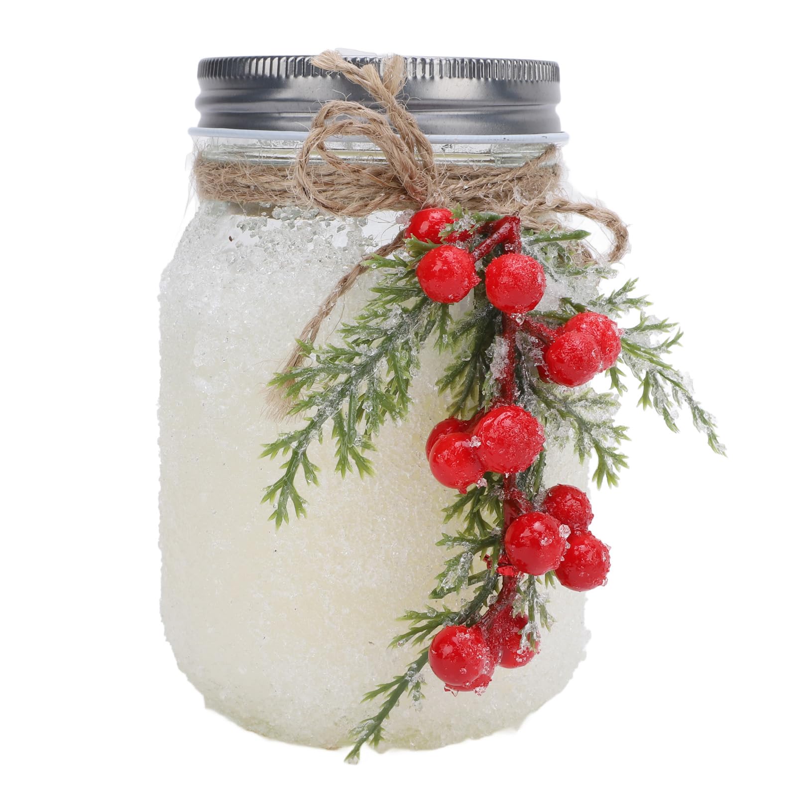 Frosting Covered Jar Candle Handmade Glass Soy Wax 18oz Branch Decor Warm Ambiance with Capacity up to 10 Hours Burn Time for Xmas Decoration