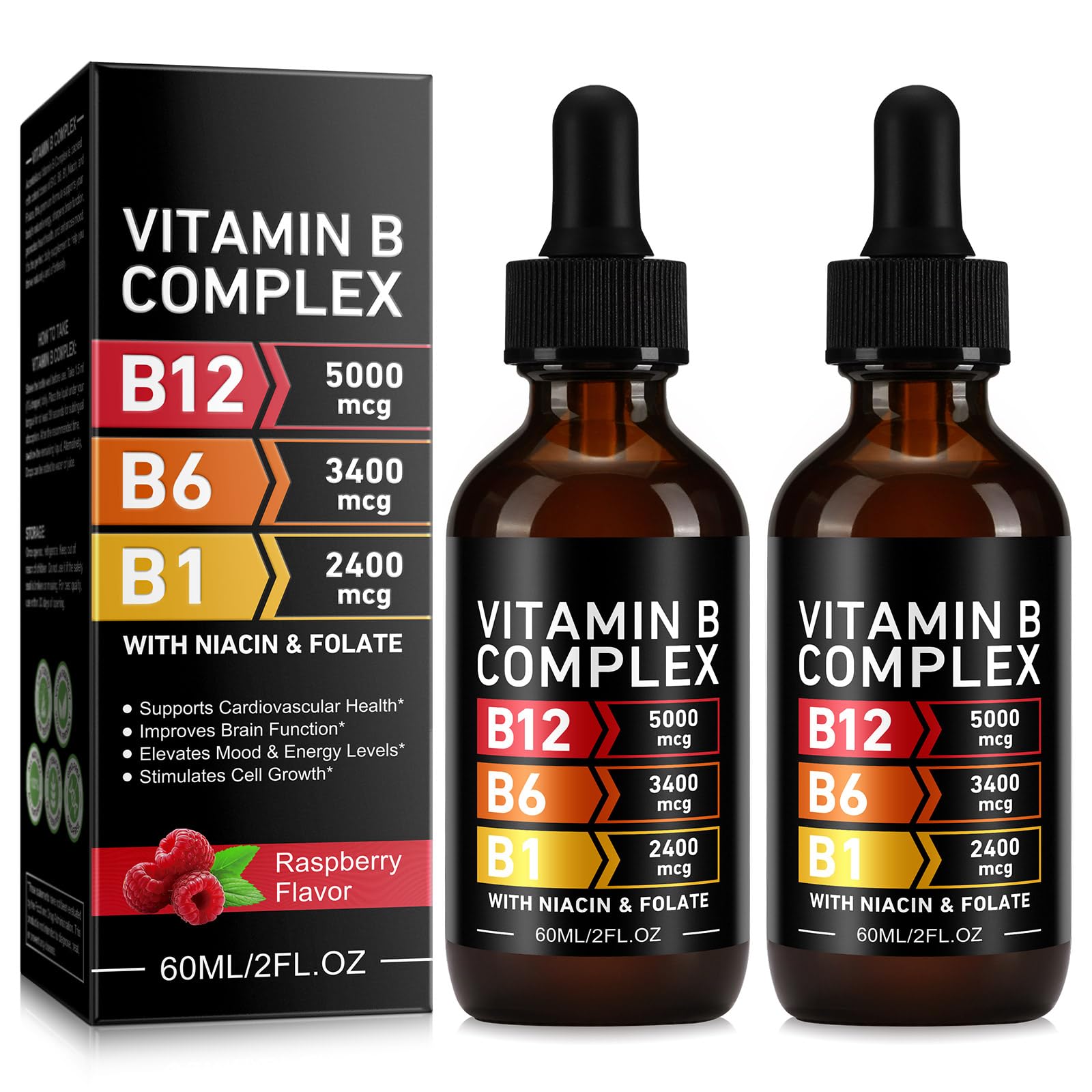 PREMIUM INGREDIENTS: Our organic liquid vitamin b complex formula with Vitamin B9 (Folic Acid)(400 DFE Folate) Methylcobalamin B12 signifies a potent dosage, ensuring each drop is robust and has maximum benefits for your wellness. Vitamin b drops are non-GMO, alcohol-free, and free of DYE or preservatives. Organic B-complex drops for men and women. COMPREHENSIVE FORMULA — Our Vitamin B-Complex includes a full spectrum of B vitamins: vitamin B1 (as Thiamine Mononitrate), vitamin B2 (Riboflavin), vitamin B3 (as Niacinamide), Vitamin B9 (Folic Acid)(400 DFE Folate), vitamin B6 (as Pyridoxine HCL), Folate, vitamin B12 (as Cyanocobalamin), and Biotin. Additionally, it contains Vitamin C, Choline (as Choline Bitartrate), and Inositol, making it a potent formula designed to support energy, nerve health, and more. SUPPORT ENERGY BRAIN HEART LEVELS: vitamin b complex for men women, supports your body's natural energy, sharpens brain function, focused, promotes heart health, and enhances mood. Let your intelligence shine with sustained brain and nerve support! It's the perfect daily supplement to help you thrive naturally and effortlessly. ORGANIC VITAMIN B COMPLEX : Empower energized vibrant you with our premium quality, organic liquid b complex drops with vitamin B9 Methylcobalamin B12. Organic vitamin b complex B1, B3, B6, B9 B12 are designed to supercharge energy levels, this liquid powerhouse is a go-to source for feeling more alive and vibrant daily. VITAMIN B COMPLEX: Vitamin b complex contains comprehensive B vitamin complex B12, B6, B1,B3,B9, Niacin, and Folate, making it a potent formula designed to support energy, nerve health, and more. B Vitamins are important for cellular energy production and energy metabolism in the body.