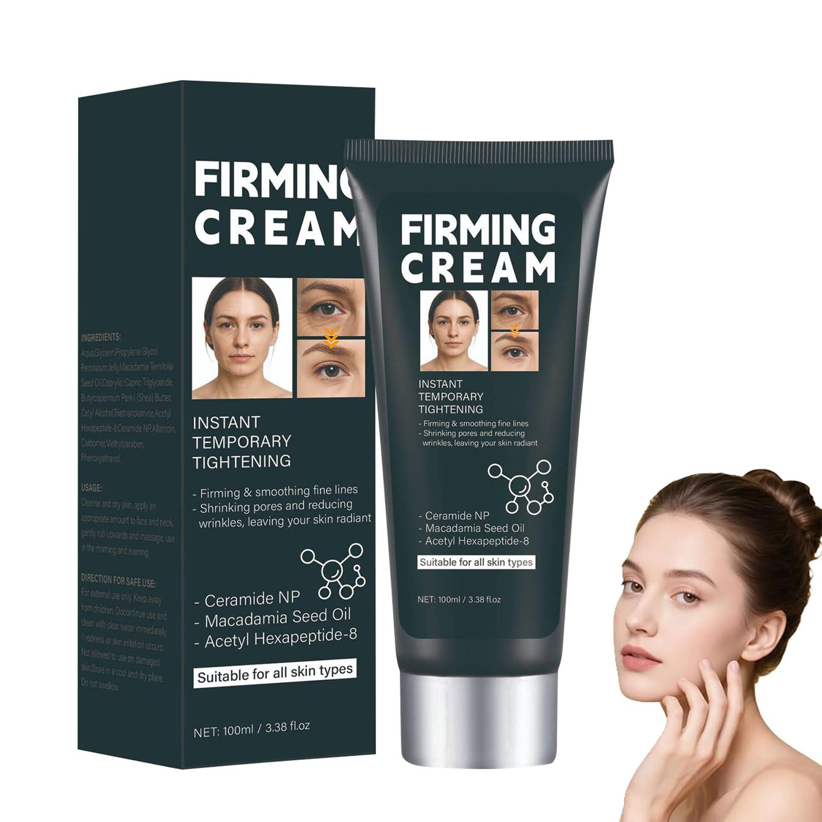 : Tightens the skin, improves fine lines, wrinkles and relaxed skin. Smoothes the skin, stimulates and improves skin elasticity. Moisture nourishes and provides deep nourishment. Effectively retains water, makes the skin smooth and smooth. Suitable for all skin types and quickly absorbed. SAFETY WARNING DERFSuitable for all skin types and quickly absorbed. Effectively retains water, makes the skin smooth and smooth. Moisture nourishes and provides deep nourishment. Smoothes the skin, stimulates and improves skin elasticity. Tightens the skin, improves fine lines, wrinkles and relaxed skin.Firming Tightening Face Creams, onmiddellijke huidverstevigingscrème, verbeterde anti-rimpel gezichtscrème voor het verwijderen van rimpels, vermindert en gladmaakt, fijne lijntjes, geschikt voor 1 : Verscherpt de huid, verbetert fijne strepen, rimpels en ontspannen huid. Maakt de huid glad, stimuleert en verbetert de elasticiteit van de huid. Vocht voedt en biedt een diepe voeding. Houdt water effectief vast, maakt de huid glad en glad. Geschikt voor alle huidtypes en snel geabsorbeerd. VEILIGHEIDSWAARSCHUWING DERFGeschikt voor alle huidtypes en snel geabsorbeerd. Houdt water effectief vast, maakt de huid glad en glad. Vocht voedt en biedt een diepe voeding. Maakt de huid glad, stimuleert en verbetert de elasticiteit van de huid. Verscherpt de huid, verbetert fijne strepen, rimpels en ontspannen huid.