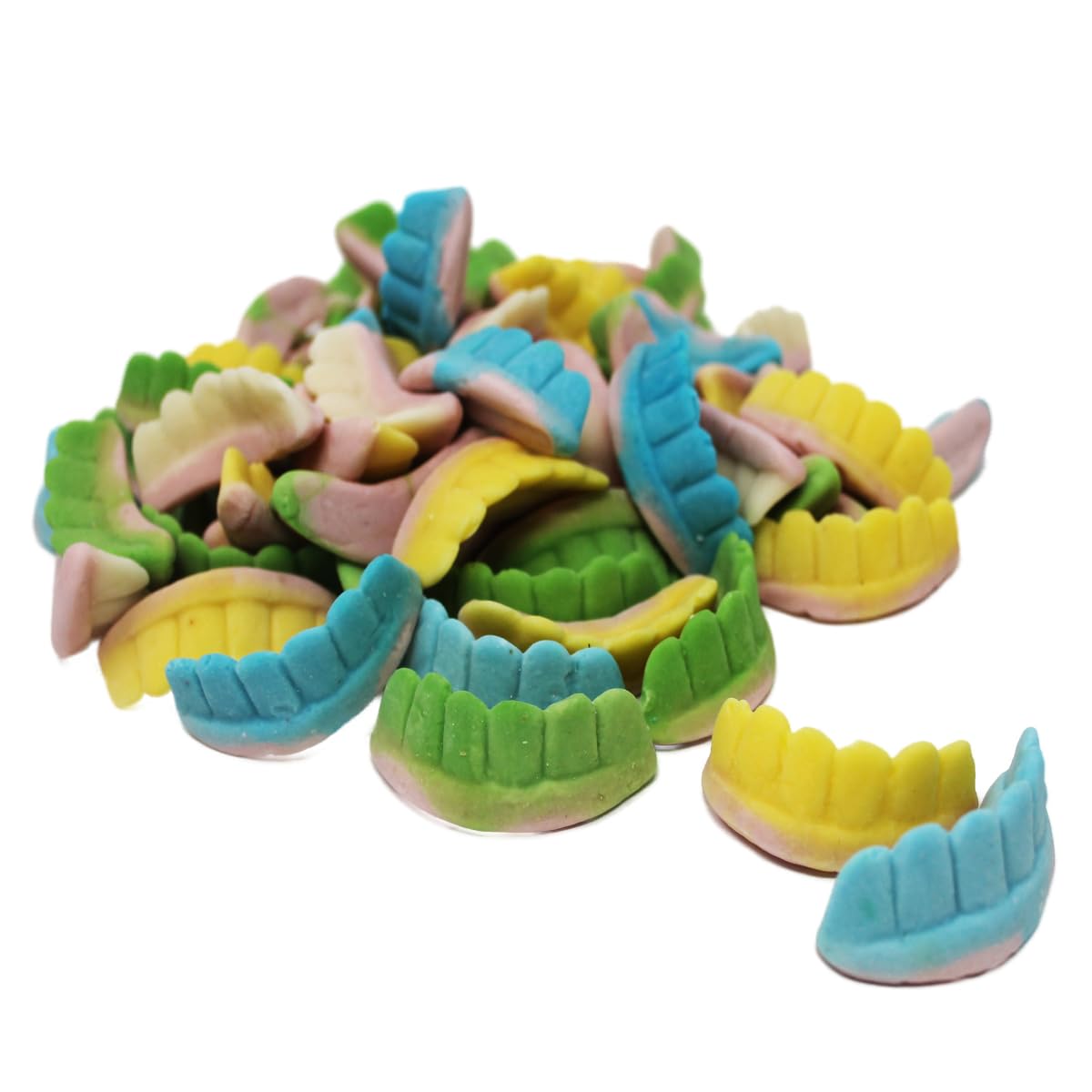 Multicolored Foaming Sugar Teeth with Various Fruit Flavors 300g. These foaming sugar teeth in yellow, blue, green, white, and pink impress with their delicious variety of flavors. Whether for parties, children's birthdays, or just because, these treats guarantee sweet moments of fun. Features: Vibrant color variety: The bright colors are eye-catching on any candy buffet. Versatile flavors: Perfect for anyone who loves variety. Distinctive texture: Firm and crispy exterior, soft and delicate interior – a unique chewing pleasure. Important note: This product contains colorings (E-129) which may affect activity and attention in children. Just bite and enjoy: these foaming sugar teeth are a delightful treat. INGREDIENTS: Sugar, water, glucose syrup, halal bovine gelatin, acidifier: E-270, glazing agent: vegetable oil (palm), E-901, E-903, protein, flavoring, modified potato starch, colors: E-163, E-100, E-160a, E-129, E-133. This product contains E-129. May affect activity and attention in children.Dents en sucre moussant multicolores avec différents goûts de fruits 300 gDESCRIPTION DU PRODUIT DESCRIPTION DU PRODUIT Dents en sucre moussant multicolores avec différents goûts de fruits 300 g. Les dents en sucre moussant dans les couleurs jaune, bleu, vert, blanc et rose convainquent par leur délicieuse variété de saveurs. Que ce soit pour les fêtes, les anniversaires d'enfants ou tout simplement entre les deux, ces friandises assurent de doux moments de plaisir. Caractéristiques : variété de couleurs vives : les couleurs vives attirent tous les regards sur n'importe quel buffet de bonbons. Saveurs polyvalentes : parfait pour tous ceux qui aiment la variété. Texture distinctive : extérieur ferme et croustillant, intérieur doux et délicat - un plaisir à mâcher unique. Remarque importante : ce produit contient des colorants (E-129) qui peuvent affecter l'activité et l'attention chez les enfants. Il suffit de mordre et de profiter : les dents de sucre moussant sont un joli point fort INGRÉDIENTS sucre, eau, sirop de glucose, gélatine bovine halal, acidifiant : E-270, agent d'enrobage : huile végétale, (palme), E-901, E-903, protéine, arôme, amidon de pomme de terre modifié, colorant : E-163, E-100, E-160a, E-129, E-133, ce produit contient des colorants E-129. Peut affecter l'activité et l'attention des enfants