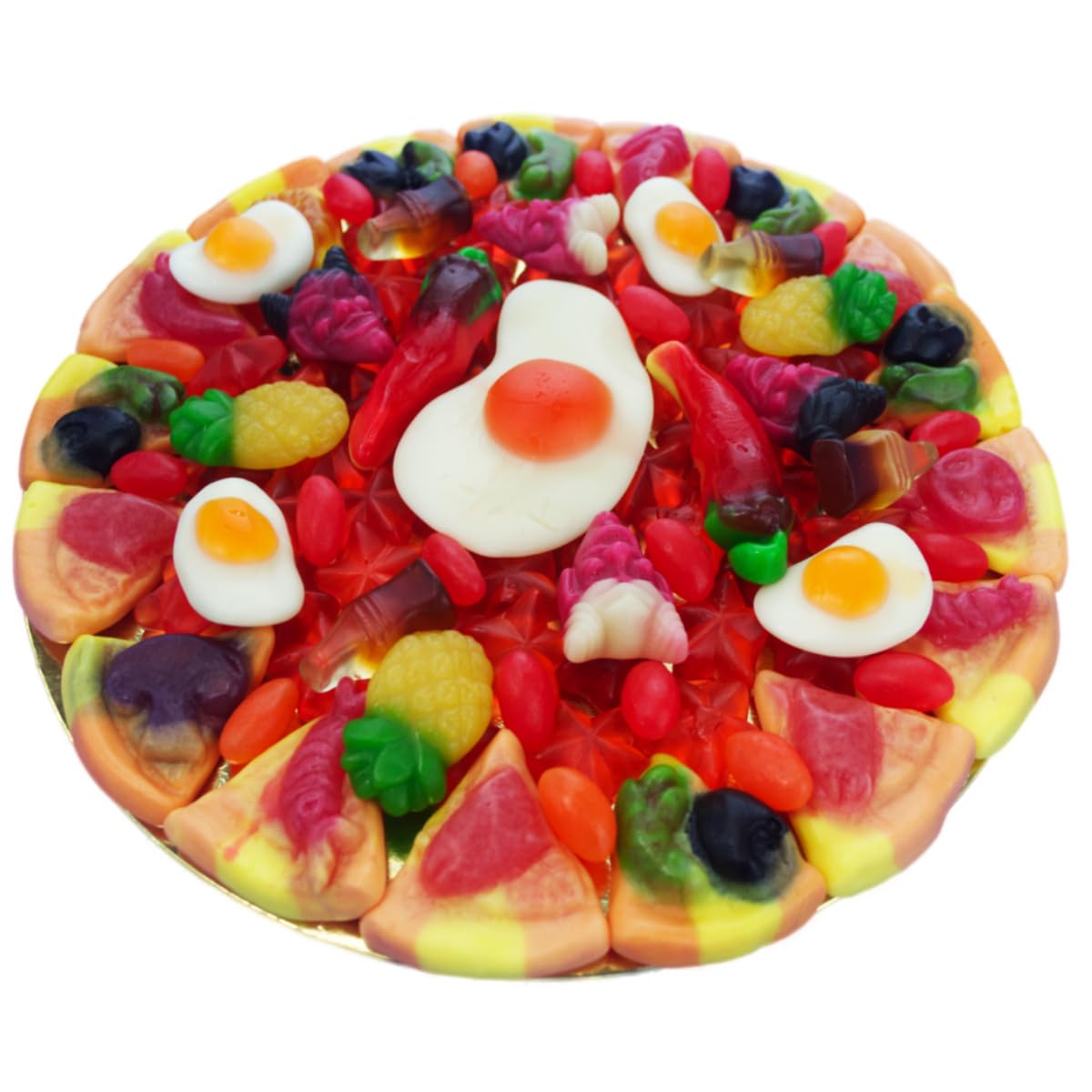 Fruit Diabolo - A lovely gift idea in a 550g pizza box - Why choose "Diabolo" fruit pizza gum? "Diabolo" fruit gum combines a fruity taste with a touch of tartness. Ideal as a gift or a delightful surprise, it brings color and joy to any table. The fruit pizza in detail: Weighing 550g, this pizza offers a colorful mix of fruit gum varieties. Each pizza is vacuum-sealed and delivered in a unique pizza box to guarantee freshness and quality. Who is the fruit pizza suitable for? Whether for children or adults, this fruit pizza will delight all those with a sweet tooth. It's perfect as a gift, a souvenir, or a sweet highlight at any celebration. Best uses: birthday parties, celebrations and events, a gift idea for friends and family, and cute treats for everyone. Buy the "Diabolo" pizza fondant now! Discover fruity delights and bring joy to your everyday life. Order the "Diabolo" pizza fruit gumpaste now and let yourself be captivated by its unique taste. As the name suggests, this pizza isn't for the faint of heart, because the chilies on the pizza really pack a punch! An exceptional and delicious birthday surprise and a stunning, eye-catching gift that's also incredibly tasty. Our pizza diabolo has a diameter of approximately 24 cm and is filled with fruit gums, pizza pieces, fried eggs, mulled wine stars, red chili pods, jelly beans, devil heads, cola bottles, fruit gums, and pineapple. The pizza isn't glued together, and you don't need to cut it. Just unwrap it and enjoy each fruit candy. All our cakes, pizzas, and hearts are handmade and then wrapped in plastic film. This allows us to always guarantee optimal freshness of the fruit gums. The composition may differ from the image. If individual items are unavailable, we reserve the right to replace them with items of equivalent or superior quality. INGREDIENTS glucose syrup, sugar, dextrose, chewing gum, gelatin, water, acidifiers: citric acid, lactic acid, malic acid, acidity regulator: sodium lactate, flavoring, stabilizer, humectant: glycerin, release agent: talc, magnesium stearate, mono- and diglycerides of fatty acids, maltodextrin, glazing agent: vegetable oil, carnausea. Bawach wax, perfumes, wax oil, white and yellow beeswax, potassium aluminum silicate, color: brilliant blue FCF, real carmine, lutein, carmine, azorubine, chlorophyllin, anthocyanins, pepper extracts, beetroot red, beta-carotene, vegetable carbon, iron oxide and hydroxide, cochineal red A, allura red AC, Patenier blue V, quinoline yellow, cochineal, ammonium sulfite. May contain traces of cereals, gluten, wheat, and nuts. INSTRUCTIONS FOR USE Unwrap and enjoy each fruit candy. This product is ready to eat after opening. There is no specific serving size mentioned, but this is a 550g pack. This product is suitable for all ages and does not present any specific consumption risks. See moreDiabolo aux fruits en forme de pizza - Idée cadeau dans un carton à pizza - 550 gDESCRIPTION DU PRODUIT DESCRIPTION DU PRODUIT Diabolo aux fruits - Jolie idée cadeau dans un carton à pizza de 550 g - Pourquoi la gomme aux fruits pizza « Diabolo » ? La gomme aux fruits « Diabolo » combine un goût fruité avec une touche de netteté. Idéal comme cadeau ou jolie surprise – Elle apporte de la couleur et de la joie à n'importe quelle table. ? La pizza aux fruits en détail avec un poids de 550 g, cette pizza offre un mélange coloré de variétés de gommes aux fruits. Chaque pizza est emballée hermétiquement sous vide et livrée dans une boîte à pizza originale pour garantir fraîcheur et qualité. ? À qui la pizza aux fruits convient-elle ? Que ce soit pour les enfants ou les adultes, cette pizza aux fruits ravira tous les gourmands. Il est parfait comme cadeau, souvenir ou comme point culminant sucré à chaque fête. Les meilleures possibilités d'utilisation : fêtes d'anniversaire, fêtes et événements, idée de cadeau pour les amis et la famille. Friandises mignonnes pour entre les deux. Achetez maintenant la pâte à sucre pizza « Diabolo » Découvrez le plaisir fruité et apportez de la joie à votre quotidien. Commandez dès maintenant le gommage aux fruits Pizza « Diabolo » et laissez-vous envoûter par son goût unique. Comme son nom l'indique, cette pizza n'est pas pour les œufs mollets, car les piments sur la pizza l'ont vraiment en eux. Une surprise d'anniversaire exceptionnelle et délicieuse et un superbe cadeau qui attire tous les regards qui est également très délicieux. Notre diabolo à pizza a un diamètre d'environ 24 cm et est équipé de gommes aux fruits, morceaux de pizza, œufs au plat, étoiles de vin chaud, gousses de piment rouge, haricots de gelée, têtes de diable, bouteilles de cola, gomme aux fruits, ananas, la pizza n'est ni collée ni vous devez la couper. Il suffit de le déballer et de profiter de chaque bonbon aux fruits. Tous nos gâteaux, pizzas et cœurs sont fabriqués à la main et sont ensuite emballés sous film plastique. Cela nous permet toujours de garantir une fraîcheur optimale des gommes aux fruits. La composition peut différer de l'image. Si des articles individuels ne sont pas disponibles, nous nous réservons le droit de les remplacer par des articles de qualité équivalente ou supérieure. INGRÉDIENTS sirop de glucose, sucre, dextrose, pâte à mâcher, gélatine, eau, acidifiant : acide citrique, acide lactique, acide malique, régulateur d'acidité : lactate de sodium, arôme, stabilisateur, humectant : glycérine, agent de démoulage : talc, stéarate de magnésium, mono- et diglycérides d'acides gras alimentaires, maltodextrine, agent d'enrobage : huile végétale, carnause. Cire de bawachs, parffs Huile de cire, cire d'abeille blanche et jaune, silicate d'aluminium de potassium, colorant : bleu brillant FCF, véritable carmin, lutéine, carmin, azorubine, cholrophyline, anthocyanes, anthocyanes, extraits de poivrons, rouge betterave, bêta-carotène, charbon végétal, oxyde de fer et hydroxyd