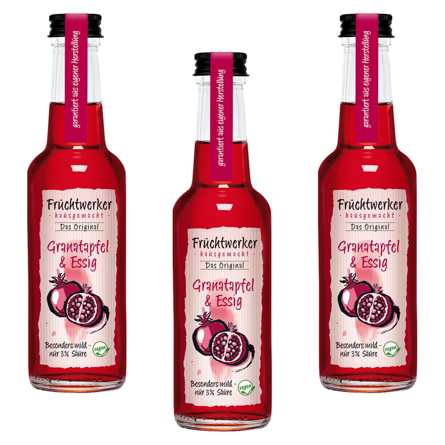 Fruchtwerker Fruchtwerker | Pomegranate & Vinegar | With Real Fruit Juice | Set of 3 | 3 x 250ml Glass Bottles