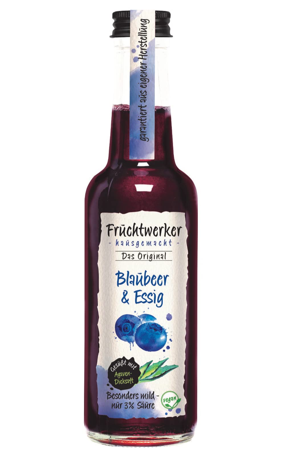 Fruchtwerker Fruit worker blueberries & vinegar with real fruit juice 250ml glass bottle
