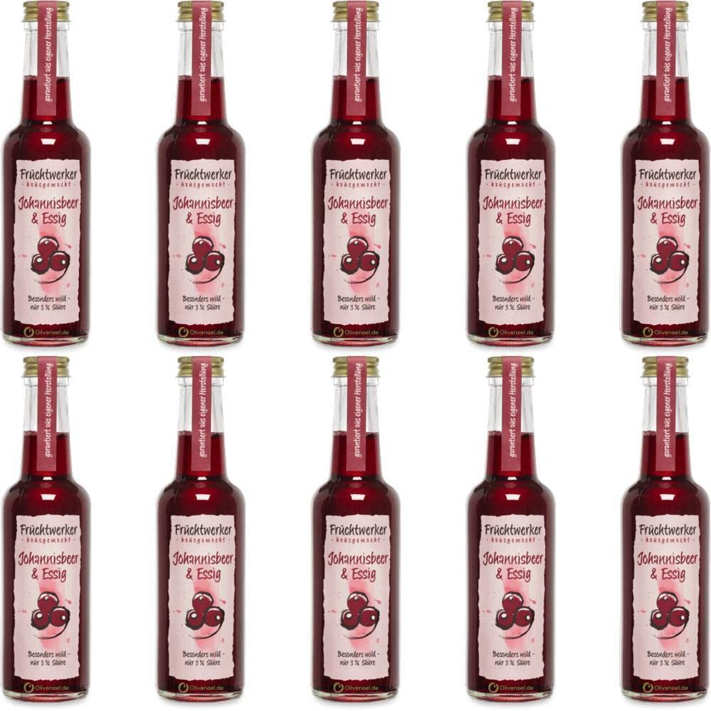 Fruchtwerker Fruit worker Johannis berries & vinegar with real fruit juice 10 x 250ml glass bottle