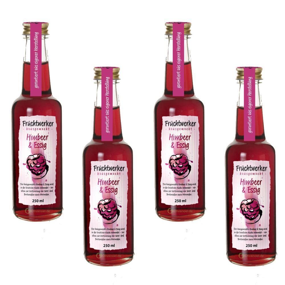 Fruitwerker framboos azijn met sap van echte vruchten 4 x 250 ml glazen fles