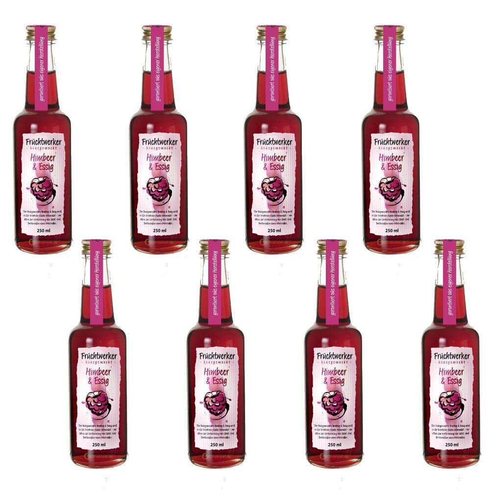Fruchtwerker Fruit worker raspberry & vinegar with real fruit juice 8 x 250ml glass bottle