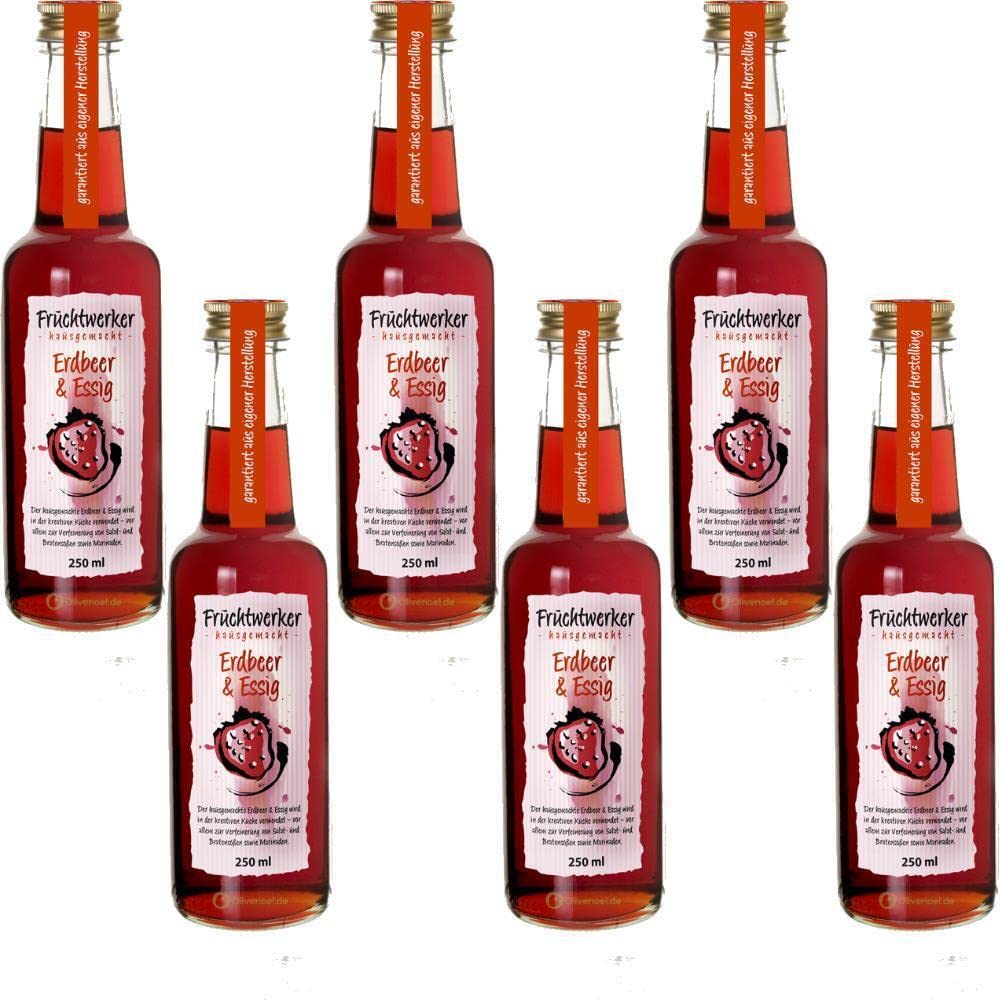 Fruitwerker aardbei azijn met sap van echte vruchten 6 x 250 ml glazen fles