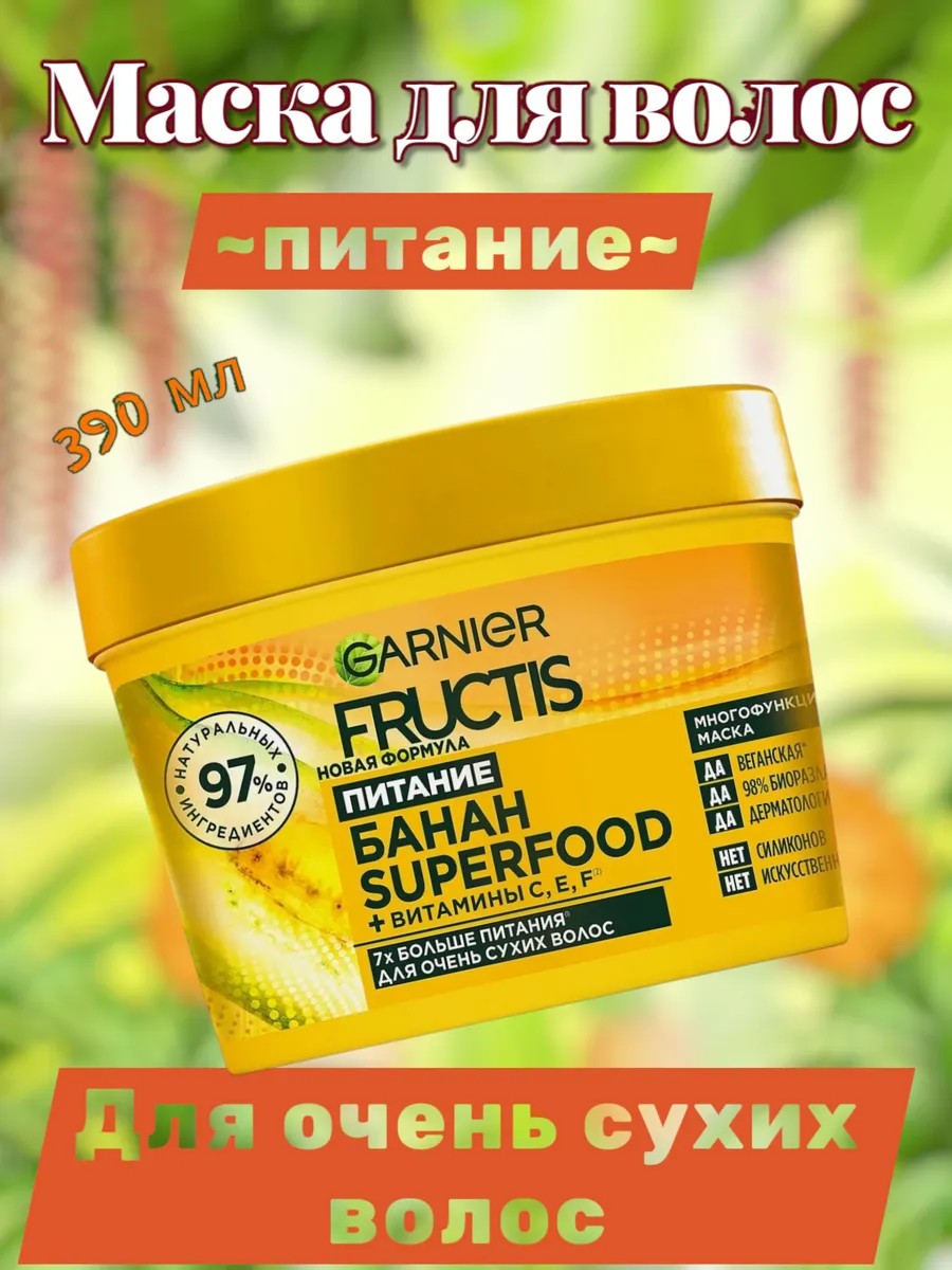 Для достижения оптимального эффекта используй маску в комплексе с шампунем для волос женским Fructis Superfood Банан. Способ применения: