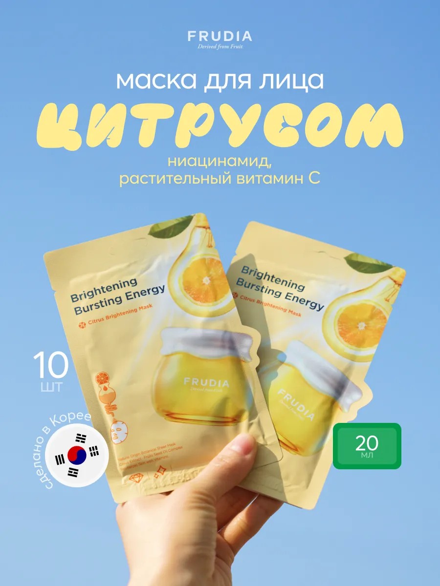 Питательная тканевая маска Фрудиа для лица с 46% содержанием цедры мандарина с острова Чеджу - это экспресс-уход для тусклой кожи, которой не хватает сияния. Богатая фруктовыми питательными веществами маска помогает придать здоровый цвет коже, тонизирует и питает. Пропитка содержит натуральный сок из цитрусов, который моментально заряжает энергией и сиянием. Маска выполнена из растительных волокон, полученных из травяной мяты, которые сохраняют активные ингредиенты фруктовой эссенции. Благодаря натуральному полотну маски, сводится к минимуму появление раздражений, поэтому обладатели чувствительной кожи могут смело использовать ее на регулярной основе. Идеальное лекало маски позволяет ей плотно прилегать к коже, повторяя все ее изгибы. Применение: используйте маску на предварительно очищенное, протонизированное лицо. По истечении 15-20 минут снимите маску и дайте остаткам эссенции впитаться в кожу.