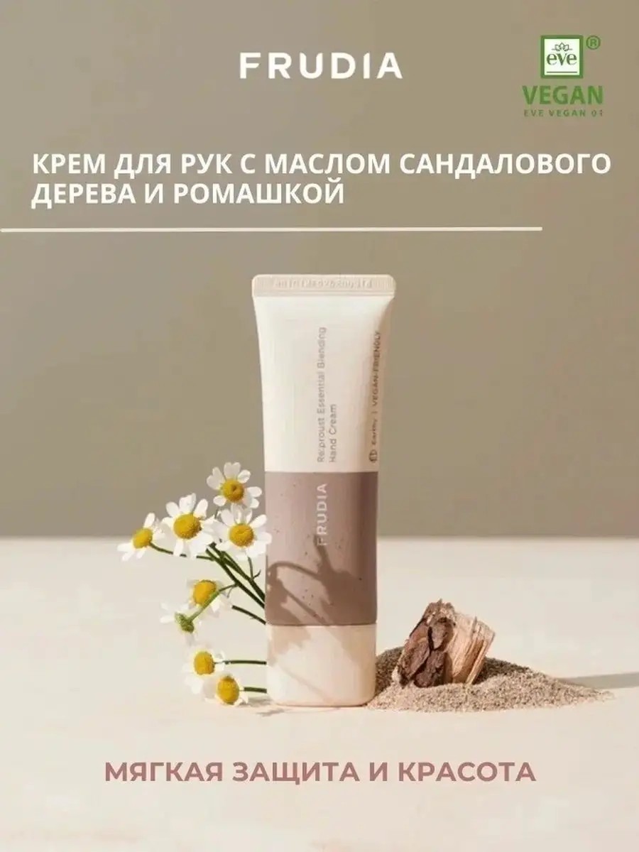 Крем для рук из серии РЕПРУСТ от FRUDIA «Сила земли» без искусственных отдушек содержит натуральные эфирные масла сандала и ромашки, и идеально подходят для ухода в любой сезон. Имеет нежную, тающую текстуру, которая мягко впитывается в кожу не оставляя липкости. Насыщает и облагораживает, обволакивая ароматом натуральных эфирных масел.