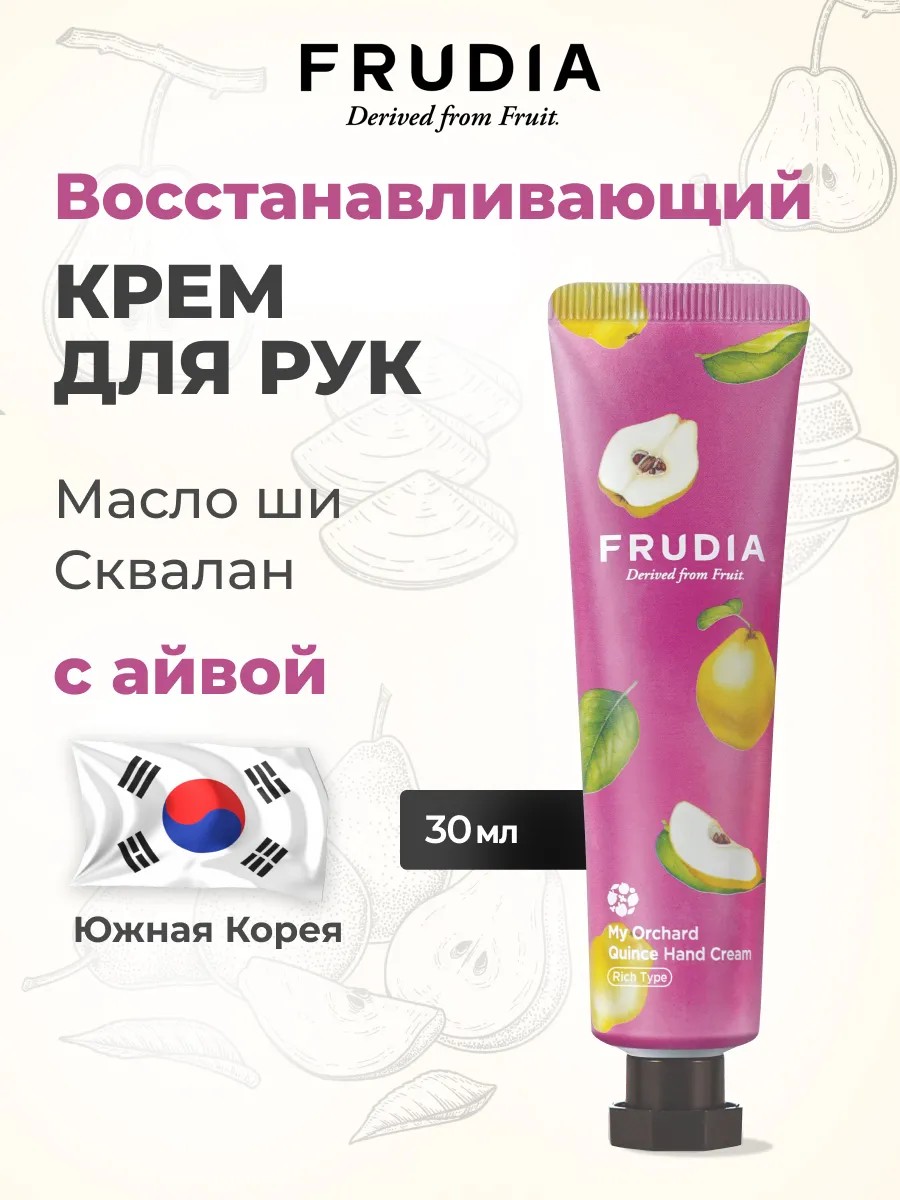 Крем корейского бренда FRUDIA обеспечивает глубокое увлажнение и защиту кожи. Аромат спелой айвы дарит приятную сладость и свежесть.