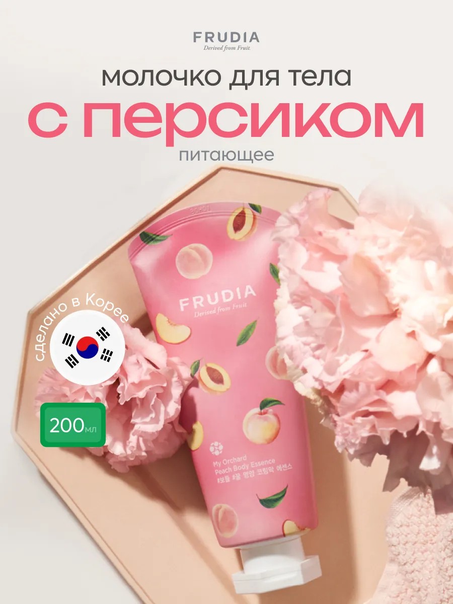 FRUDIA MY ORCHARD PEACH BODY ESSENCE body lotion with peach is a nourishing body product with a pleasant fruity aroma. Its delicate texture provides instant hydration, eliminating flaking, dryness, and irritation.