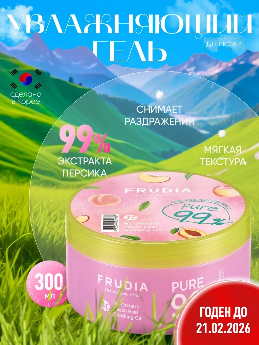 Универсальный гель с персиком от Frudia обладает мягкой текстурой и множеством полезных свойств, что делает его идеальным выбором для ухода за кожей. Увлажняющие свойства этого средства помогут быстро снять воспаления и раздражения, обеспечивая комфорт и спокойствие коже. Благодаря охлаждающему эффекту, использование становится приятным опытом в жаркую погоду. Продукт стимулирует регенерацию клеток, способствуя обновлению кожи и повышая ее барьерные механизмы. Корейский гель персик придает коже бархатистость и гладкость, делая её здоровой и ухоженной на вид. Можно использовать, как базу под макияж или увлажняющий крем. Фрудиа борется с несовершенствами кожи, моментально снимая отеки и успокаивая раздражения. Также освежает кожу и подойдет для ухода за кожей после бритья. Он обладает бактерицидным свойством, поэтому эффективно предотвращает воспаления. Нейтральный показатель pH 5.5, деликатно воздействует на поверхность эпидермиса. Не комедогенный состав позволяет избежать закупоривания пор, что делает этот гель подходящим для любого типа кожи. Идеально подходит для обезвоженной и сухой, возрастной и комбинированной, а также проблемной и чувствительной кожи. Идеально подходит для ежедневного использования как часть вашей базовой косметической рутины. Повышение барьерных функций кожи способствует защите от внешних агрессивных факторов. Смягчение воспалений происходит моментально после нанесения этого средства на проблемные участки лица или тела. Охлаждающее действие облегчает состояние при покраснениях и зуде, даруя ощущение свежести и комфорта. Использование продукта позволяет насытить клетки необходимыми микроэлементами, ускоряя процесс их восстановления. Данный аспект особенно важен в период стрессов или активного воздействия ультрафиолетовых лучей. Отлично подойдет на подарок жене, маме и ребенку, а также подруге, девушке и девочке, а также мужчине. Уходовая косметика — это полезный подарок на день рождения и 8 марта, новый год и просто так.