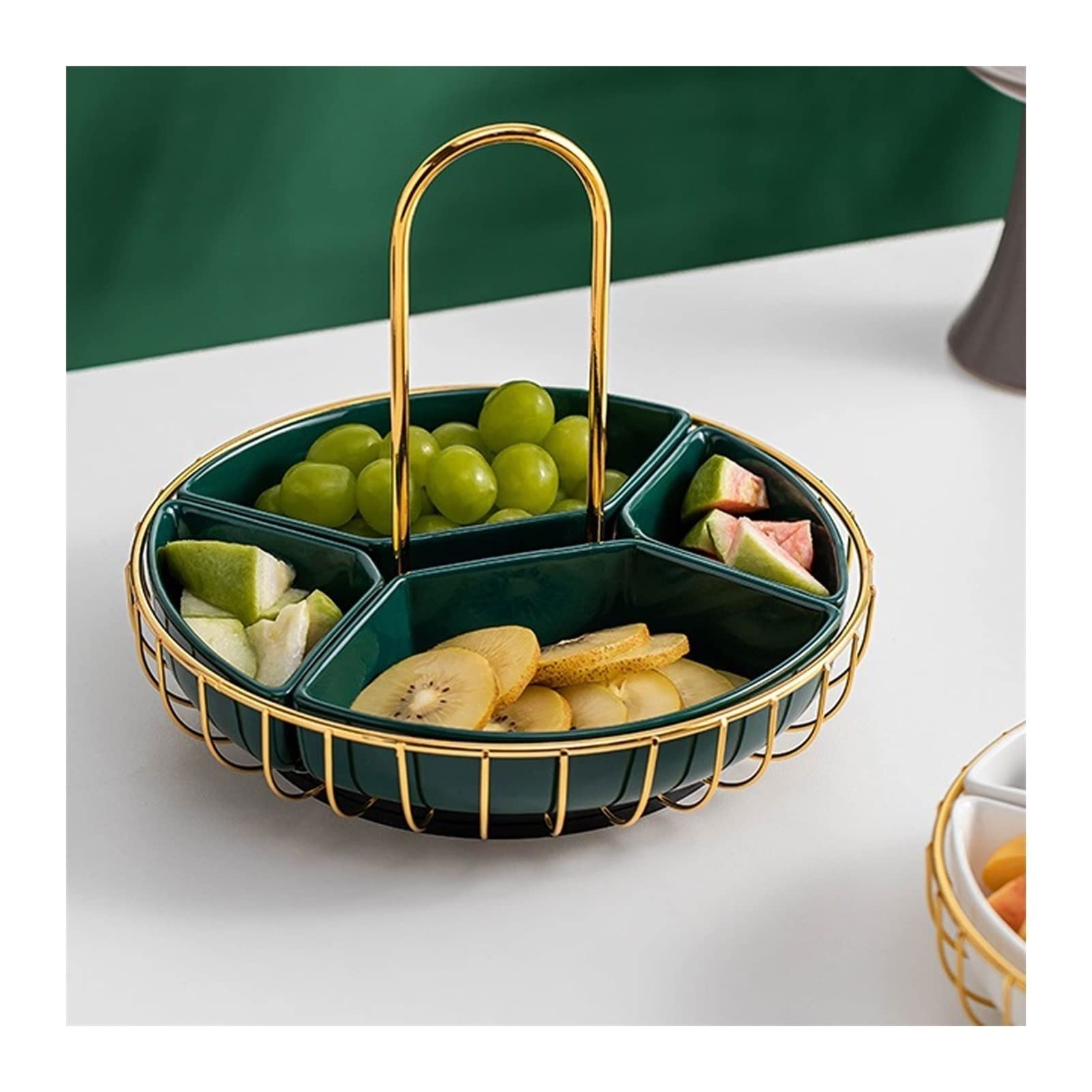 Fruit Bowl Salad Bowl Ceramic Fruit Tray Rotatable 4 Compartments with Metallic Blue and Handles Fruit Snacks Fruit Platter Fruit Bowl for Kitchen Counter (Color : A) (B)