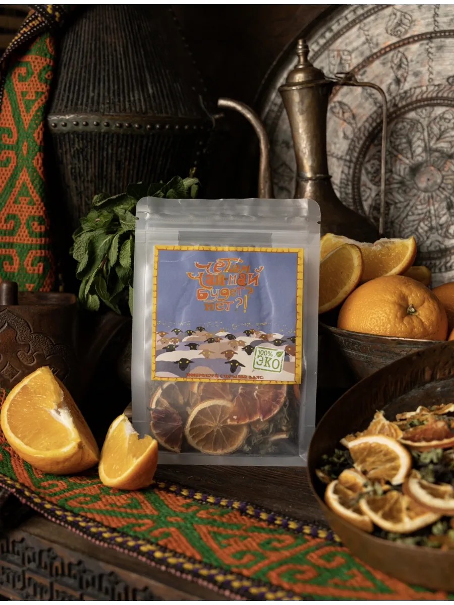 This invigorating drink, made from genuine Ceylon black tea (produced in Sri Lanka), selected mountain wild thyme, collected high in the mountains of Dagestan, where pure nature provides maximum benefits and microelements, and dried oranges, combines the best of nature: the freshness of citrus, the richness of tea, and the tartness of herbs.