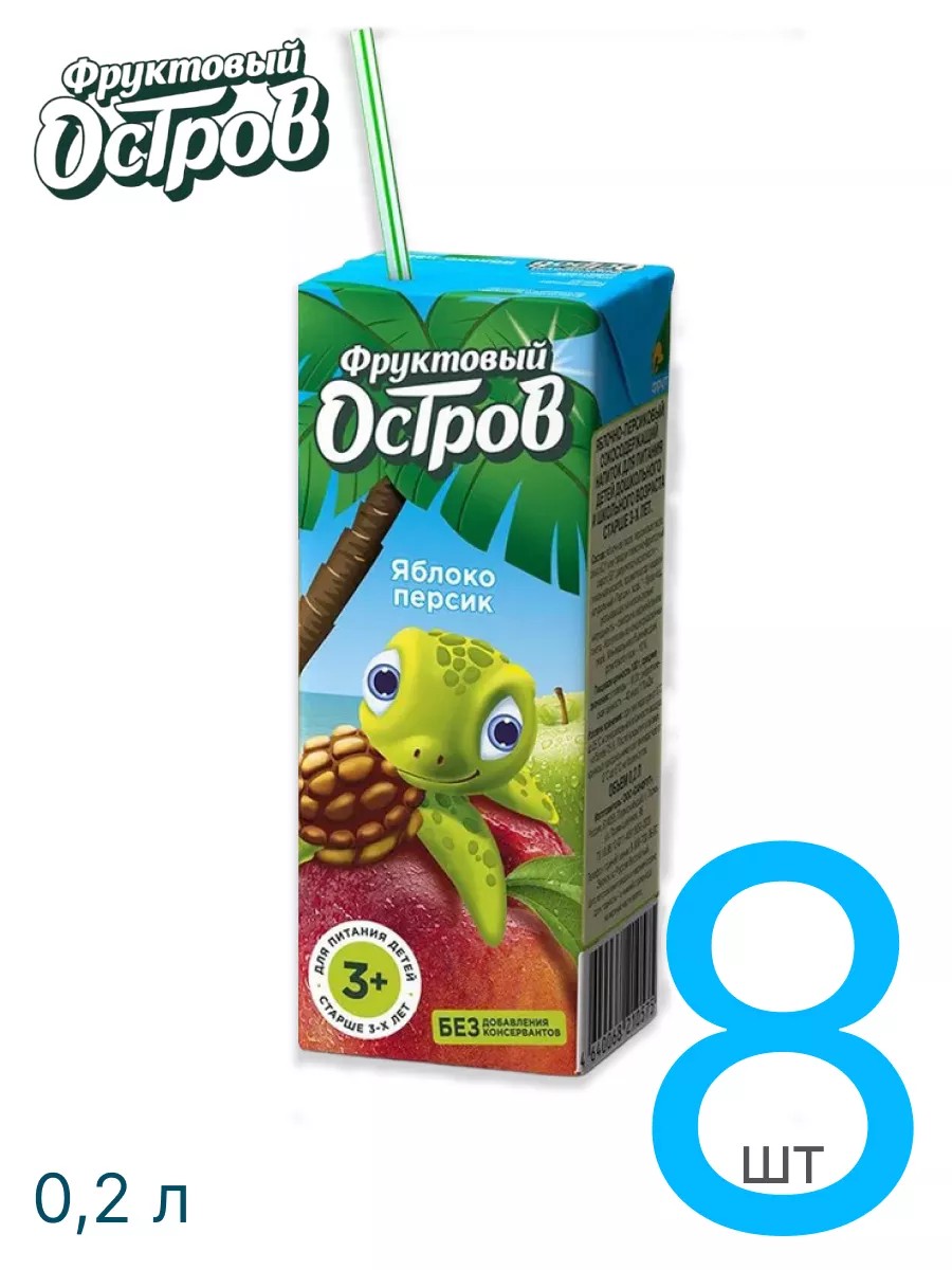 Фруктовый остров Напиток сокосодержащий для детей Яблоко-Персик 0,2 л, 8 шт