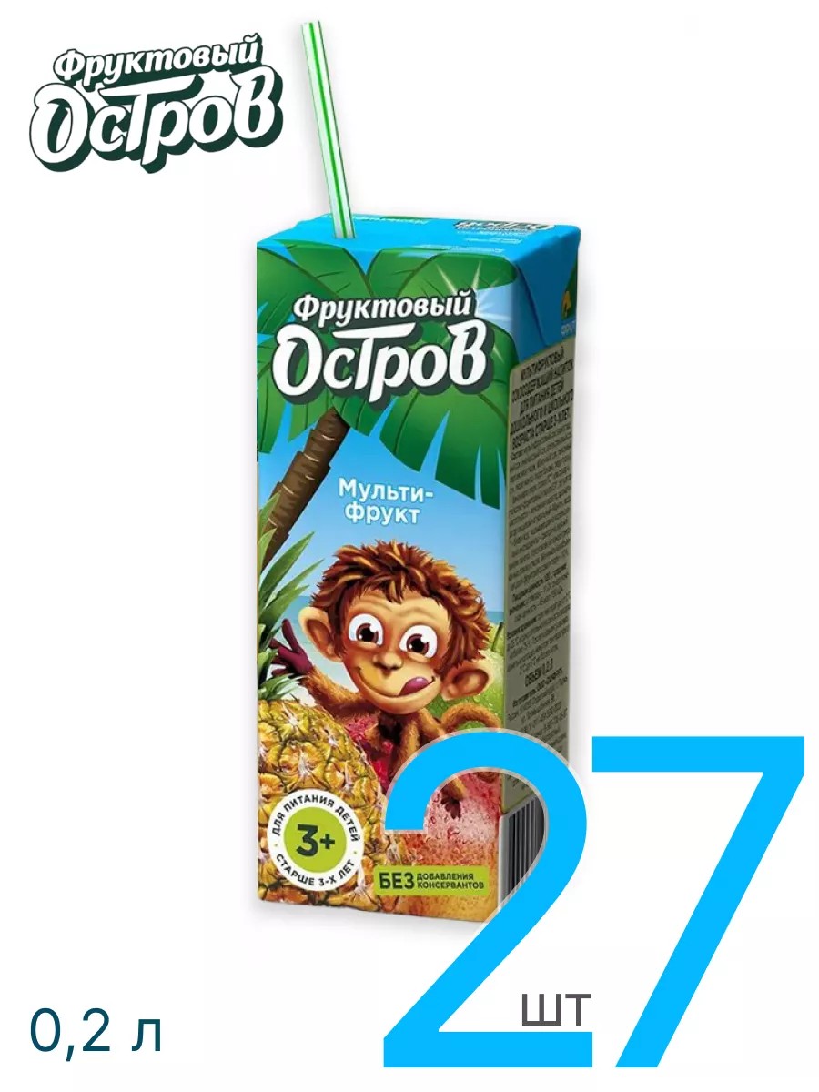 Фруктовый остров Напиток сокосодержащий для детей Мультифрукт 0,2 л, 27 шт