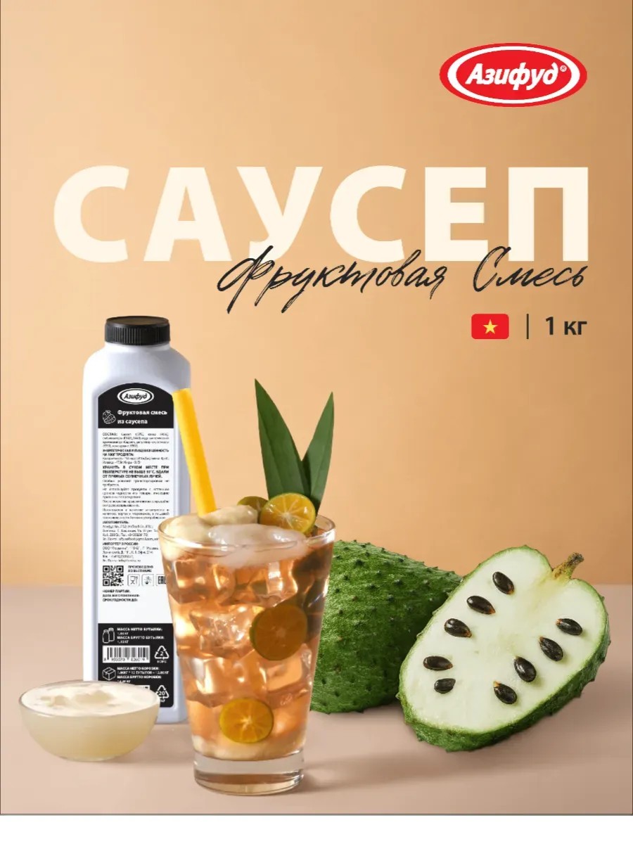 Фруктовая смесь Саусеп (Гуанабана) — это яркое и освежающее решение для создания неповторимых напитков бабл ти. Сочная и ароматная, с уникальным сладко-кислым вкусом экзотического саусепа, эта смесь подарит вашим напиткам тропическую нотку и натуральную свежесть. Идеально подходит для бодрящих bubble tea, фруктовых коктейлей и десертов, добавляя им насыщенный фруктовый аромат и яркий вкус. Удобная упаковка 1 кг прекрасно подойдет как для кафе и ресторанов, так и для творческих домашних экспериментов. Откройте для себя насыщенный тропический вкус и разнообразьте ваши напитки с фруктовой смесью Саусеп!