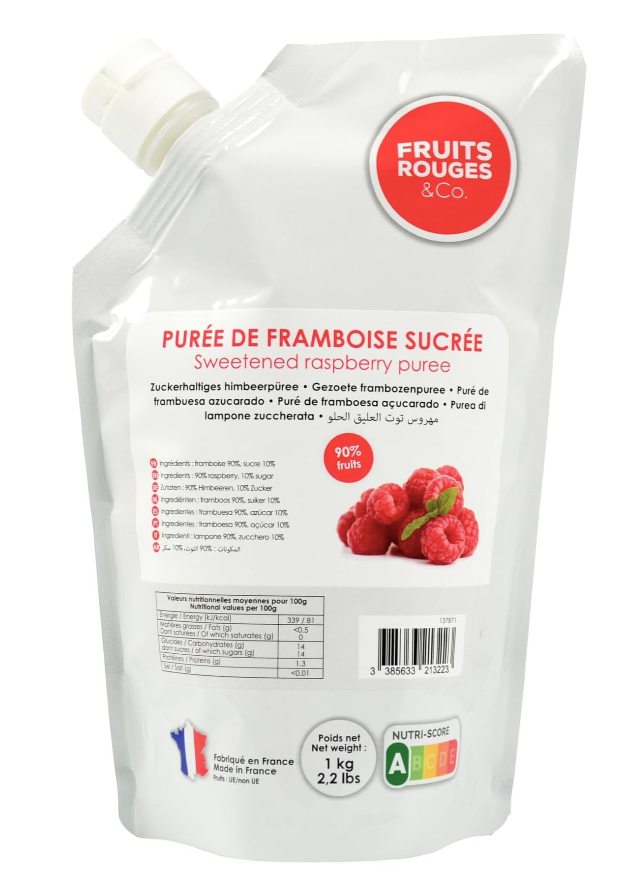 A simple and 100 natural recipe for a flavor and color, close to fresh fruit. Fruits Rouges and Co fruit coulis and purees do not contain any flavorings, colorings, thickeners or preservatives. The purees are made up of at least 90 fruit pulp and the coulis are made up of at least 80 . Rigorously selected fruits from around the world for rich taste and color guarantee an authentic flavor. A gentle manufacturing process adapted to each fruit, with permanent monitoring to ensure consistent quality. As well as a requirement and a commitment to the ISO 22000 IFS standard (higher level) which guarantees food safety. Fruit puree is used like a ready-to-use fruit for multiple possibilities: In drinks: cocktails, mocktails, smoothies, nectars, juices. In pastries: fruit mousses, tarts, mousselines, bavarois, charlottes, jellies. In confectionery: fruit jellies, ganaches, candies, fruit chocolates. In ice creams and sorbets Fruit coulis is used as a finished product In pastries: Plate decorations, toppings for verrines (panna cota, cottage cheese, tiramisu, faitselles, etc.), accompaniment to desserts, ice creams and sorbets Snacking: accompaniment to fresh fruit INGREDIENTS 90 fruit, 10 sugarMade in France. Une recette simple et 100 naturelle pour une saveur et une couleur, proches du fruit frais. Les coulis et les purées de fruits Fruits Rouges and Co ne contiennent ni arôme, ni colorant, ni épaississant, ni conservateur. Les purées sont composées minimum de 90 de pulpe de fruits et les coulis de minimum 80 . Des fruits rigoureusement sélectionnés, à travers le monde pour une richesse de goût et de couleur, garantissent ainsi une saveur authentique. Un process de fabrication en douceur adapté à chaque fruit, avec un contrôle permanent pour assurer une qualité constante. Ainsi qu'une exigence et un engagement avec la norme ISO 22000 IFS (niveau supérieur) qui garantissent la sécurité alimentaire. La purée de fruits s'utilise comme un fruit prêt à l'emploi pour de multiples possibilités : En boissons : cocktails, mocktails, smoothies, nectars, jus… En pâtisserie : mousses de fruits, tartes, mousselines, bavarois, charlottes, gelées… En confiserie : pâtes de fruits, ganaches, bonbons, chocolats aux fruits… En glaces et sorbets Le coulis de fruits s'utilise comme un produit fini En pâtisserie : Décors d'assiette, nappage pour verrines (panna cota, fromage blanc, tiramisu, faisselles.), accompagnement de desserts, glaces et sorbets Snacking : accompagnement de fruits frais INGRÉDIENTS 90 fruits, 10 sucreFabrication française.
