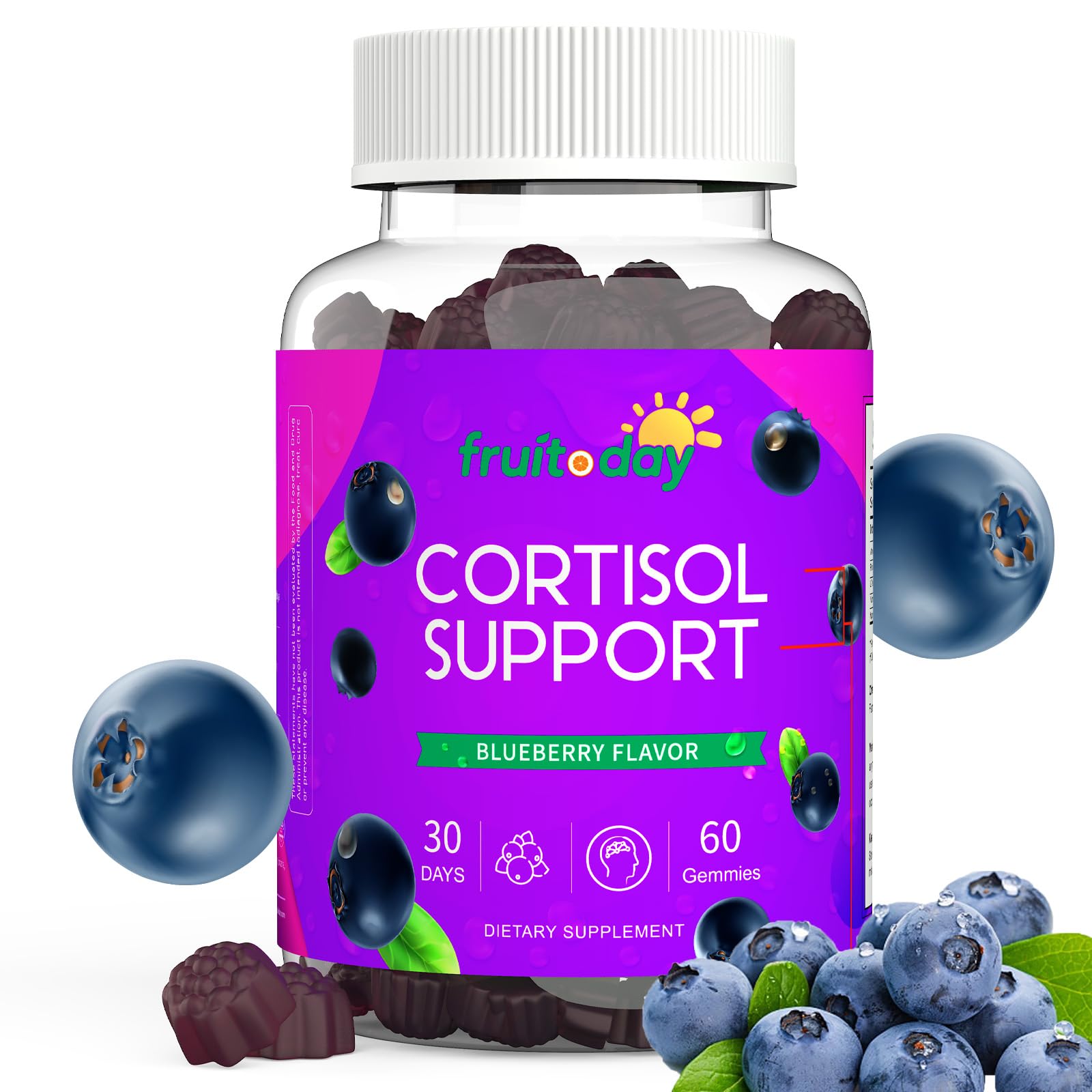 Fruitoday Cortisol Support Gummies for Daily Calm Magnesium Glycinate with Vitamin D3, B6, Potassium, and Calcium Blueberry Flavor, 60 Count