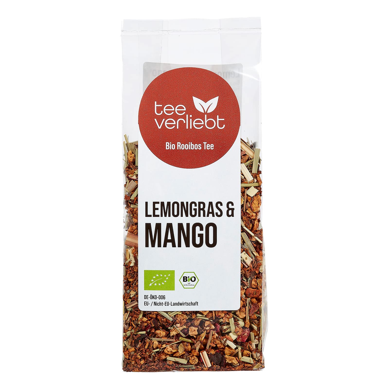 FRUTEG Rooibos bio Mango & Lemongras 100 g | Th de brousse rouge perdant dans la meilleure qualit de feuille - Caf ine Free | Frais fruit exotique | De l'agriculture biologique certifi e | 100g