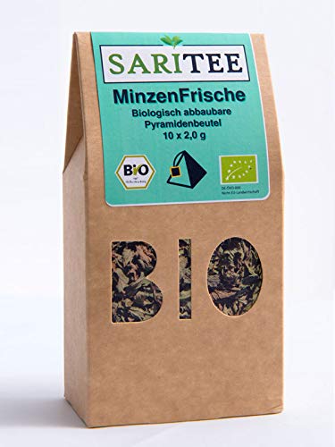 SARITEE Organische Mint Fresh in Pyramid Tassen Peppermint-thee met pepermuntgestuurde biologische cultivatie Pepermunt theezakje Peppermint Tea Bio Theezak 10 x 2 g