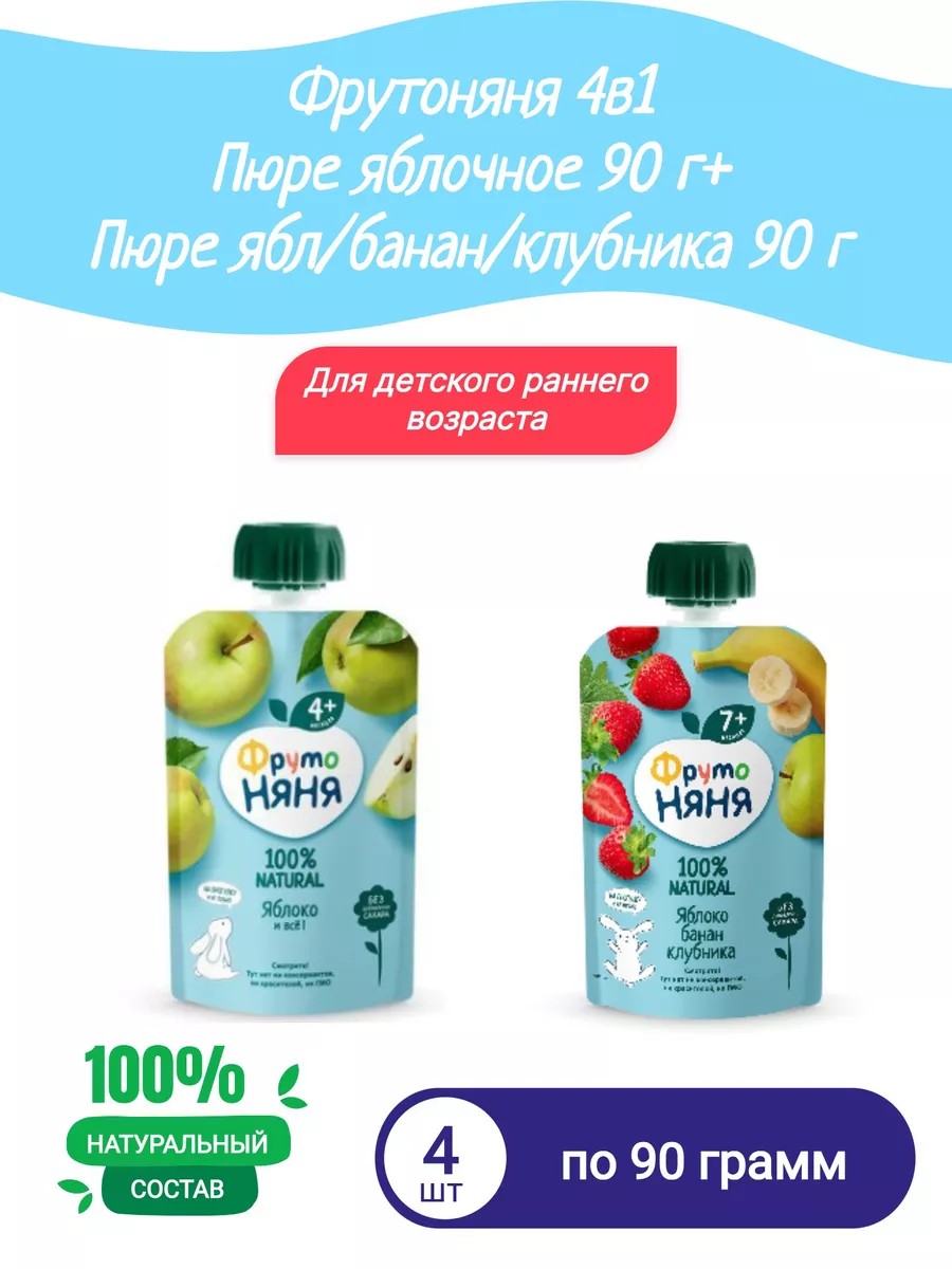 4в1 Пюре яблочное 90 г+ Пюре ябл бан клубника 90 г