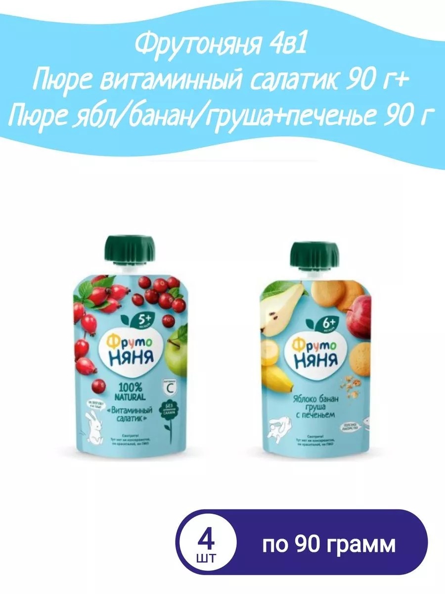 4в1 Пюре витамин салатик 90г+Пюре ябл бан груш+печенье 90г