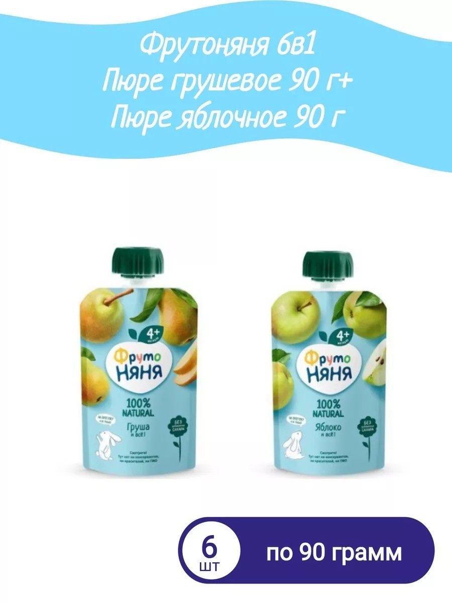 6в1 Пюре грушевое 90 г+ Пюре яблоко 90 г