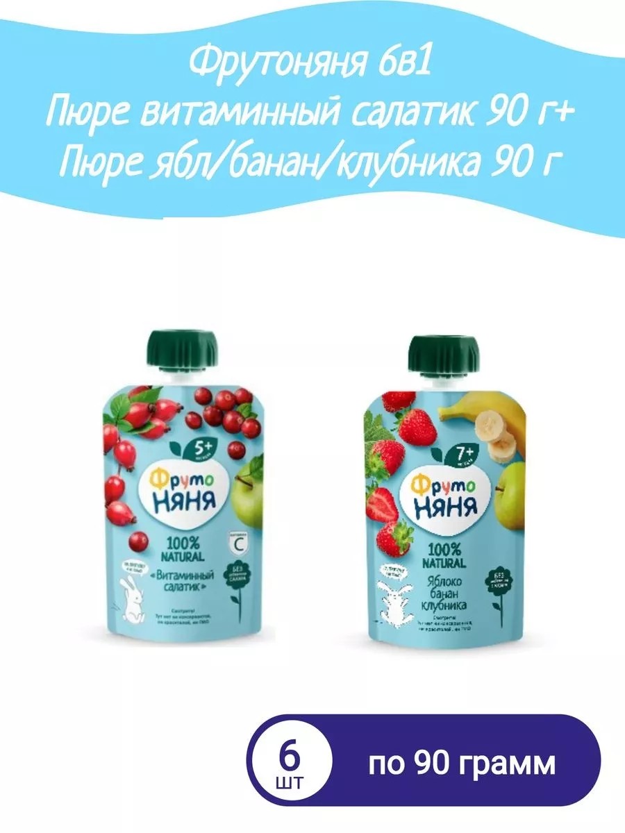 6в1 Пюре витаминный салатик 90г+Пюре ябл бан клубника 90г