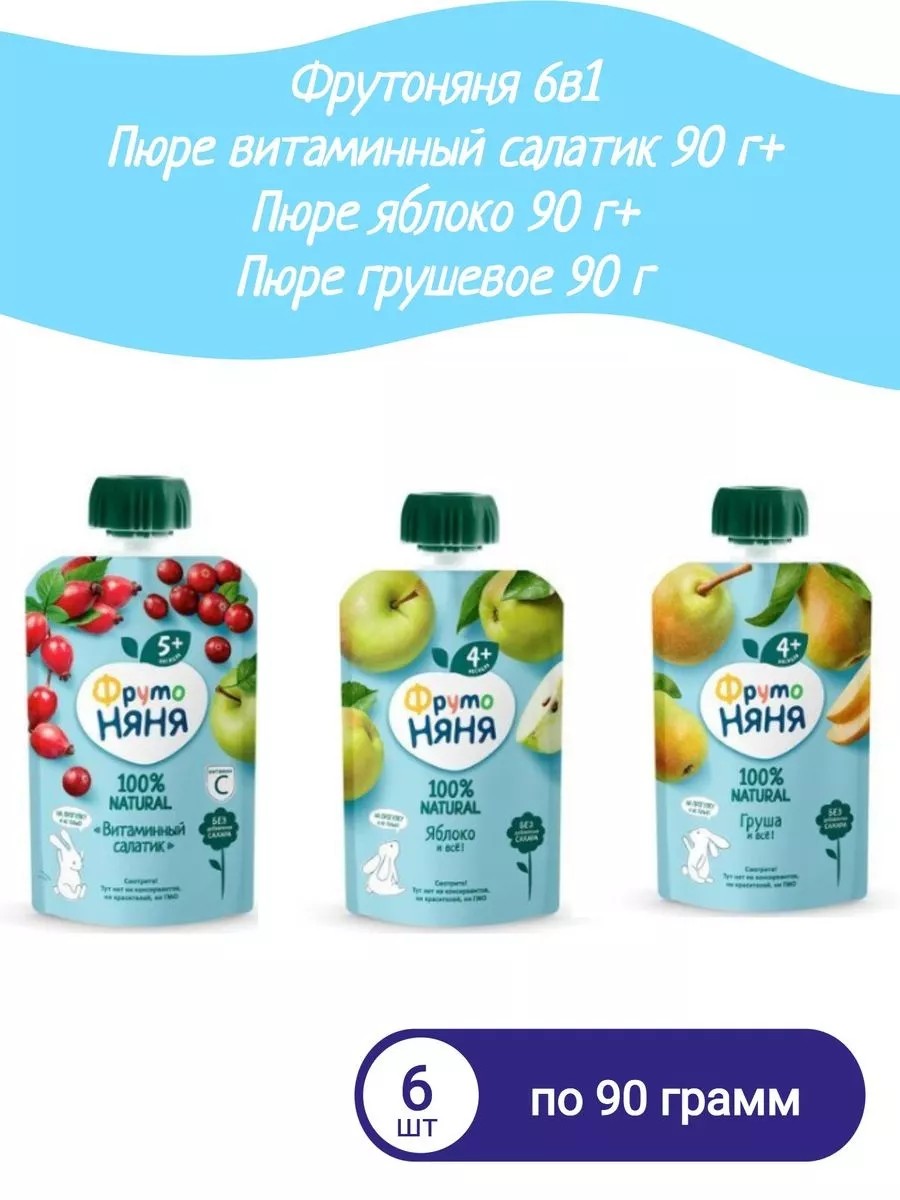 6в1 Пюре грушевое+яблоко+витаминный салатик