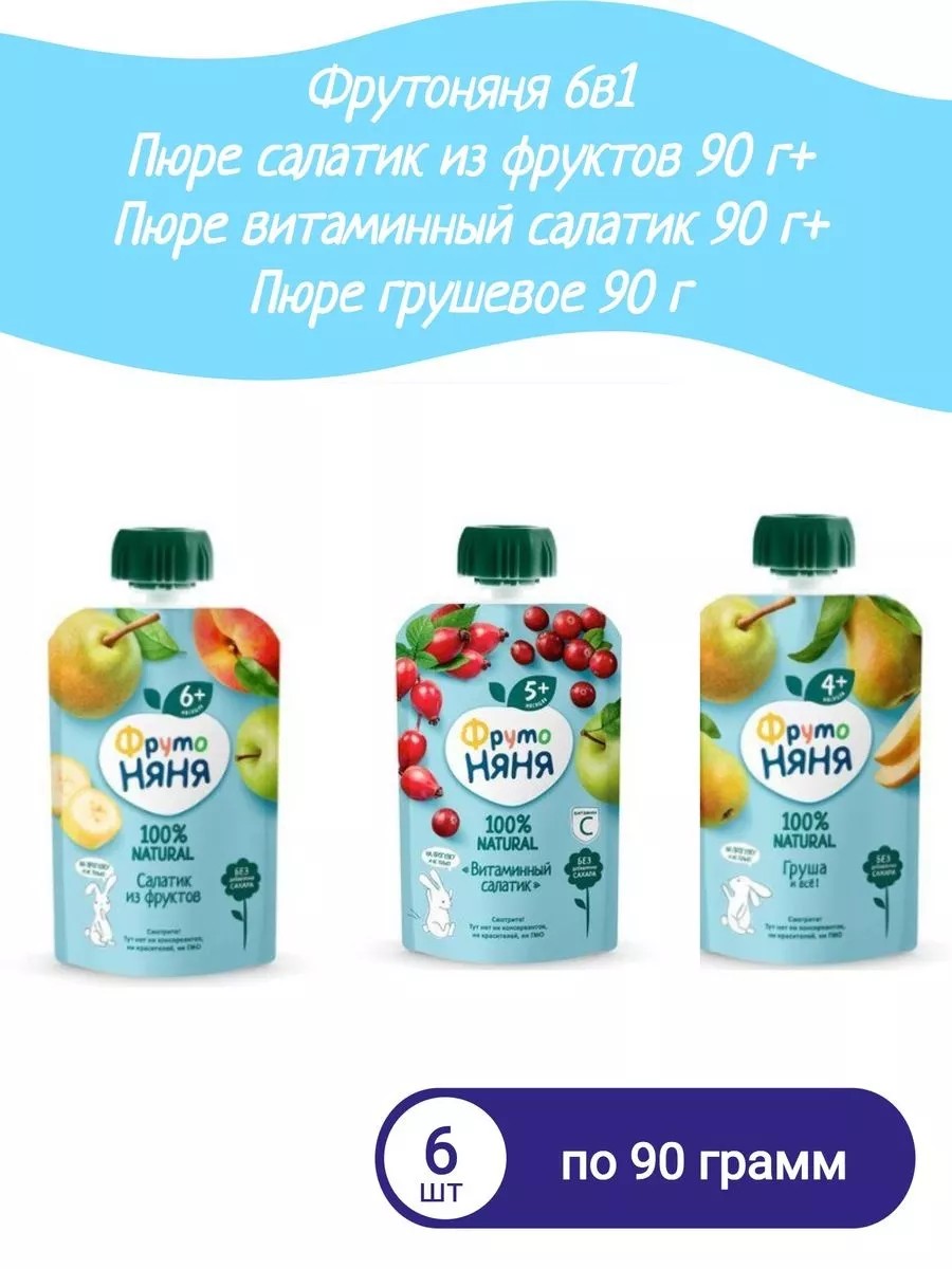 6в1 Пюре грушевое+витаминный салатик+салатик из фруктов