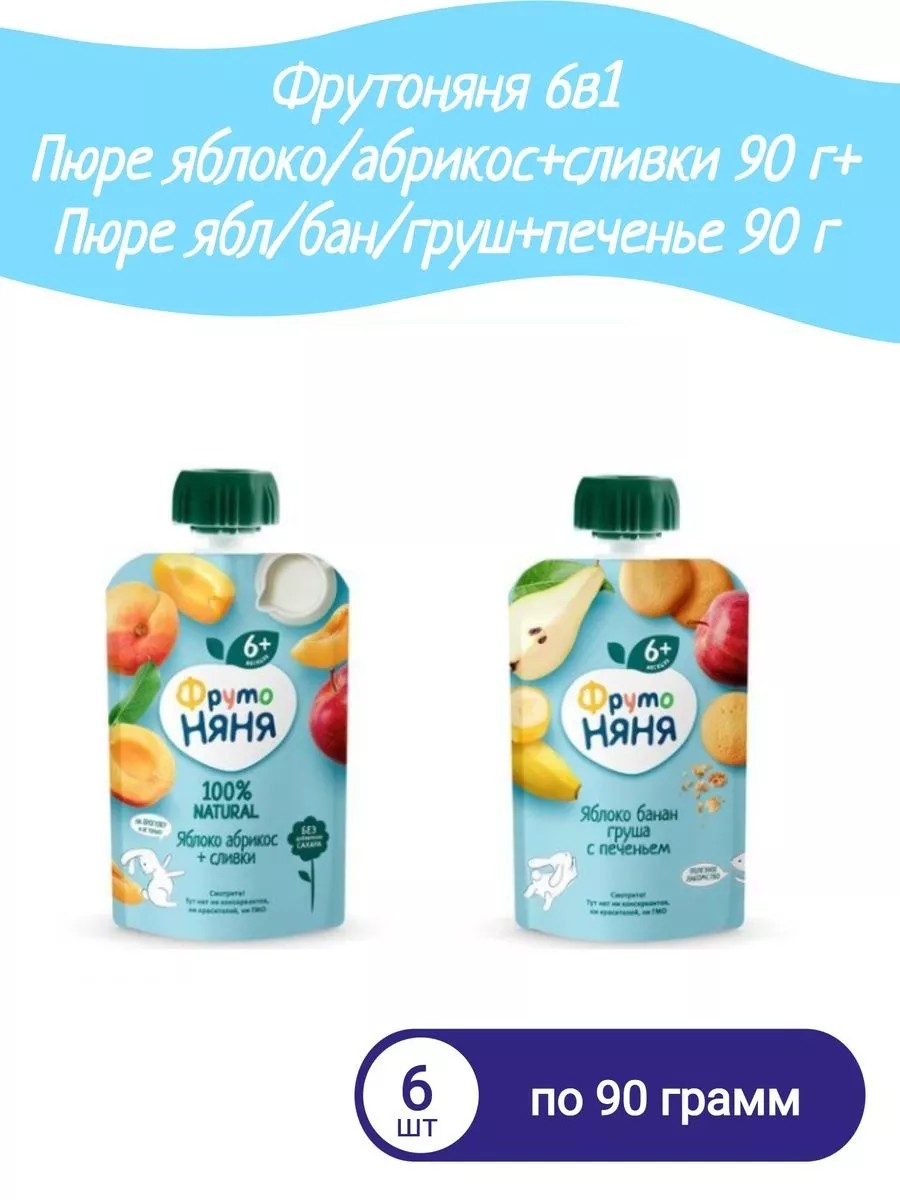 6в1 Пюре ябл абр+сливки 90г+Пюре ябл бан груш+печ 90г