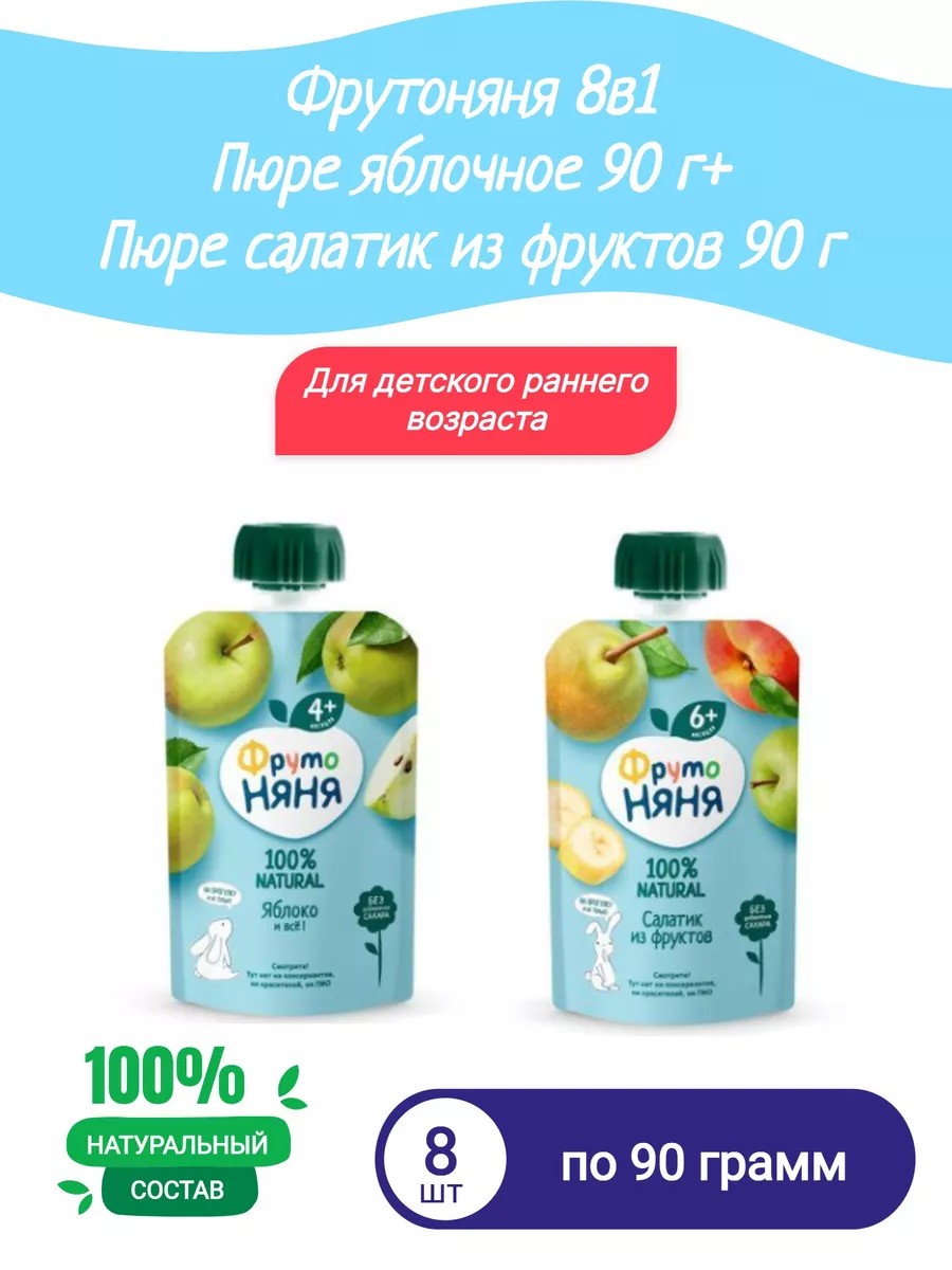 8в1 Пюре яблочное 90 г+ Пюре салатик из фруктов 90 г
