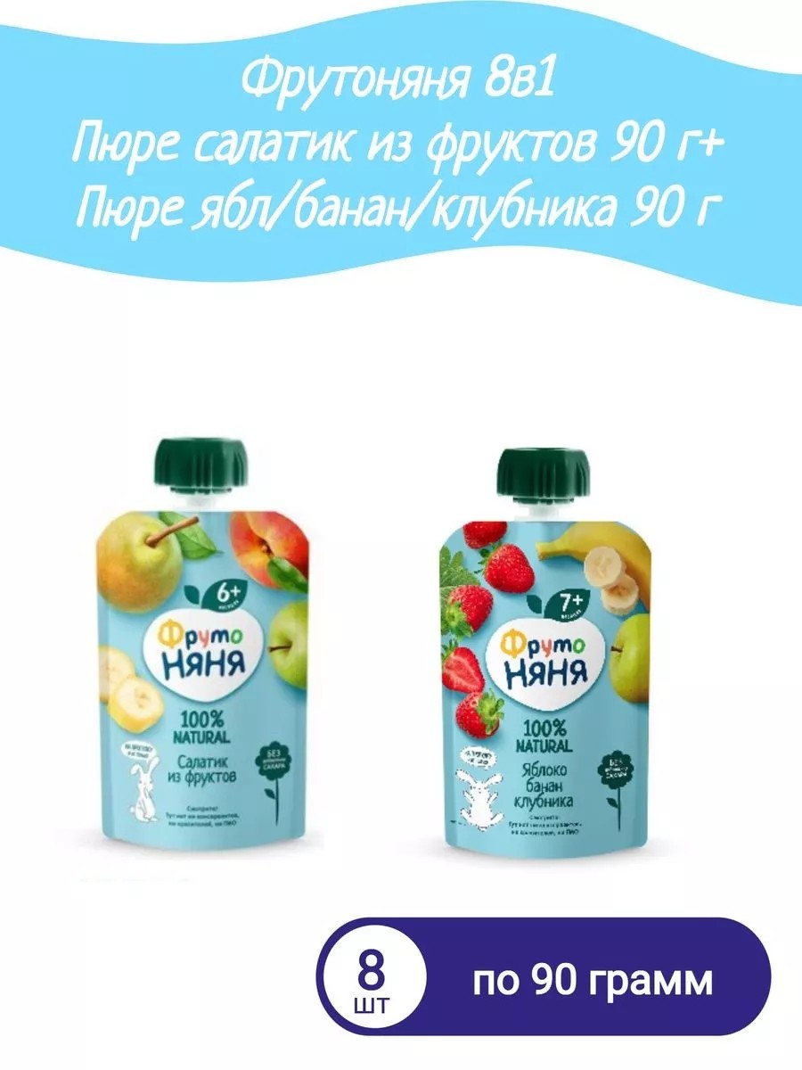 8в1 Пюре салат из фрукт 90г+ Пюре ябл бан клубника 90г