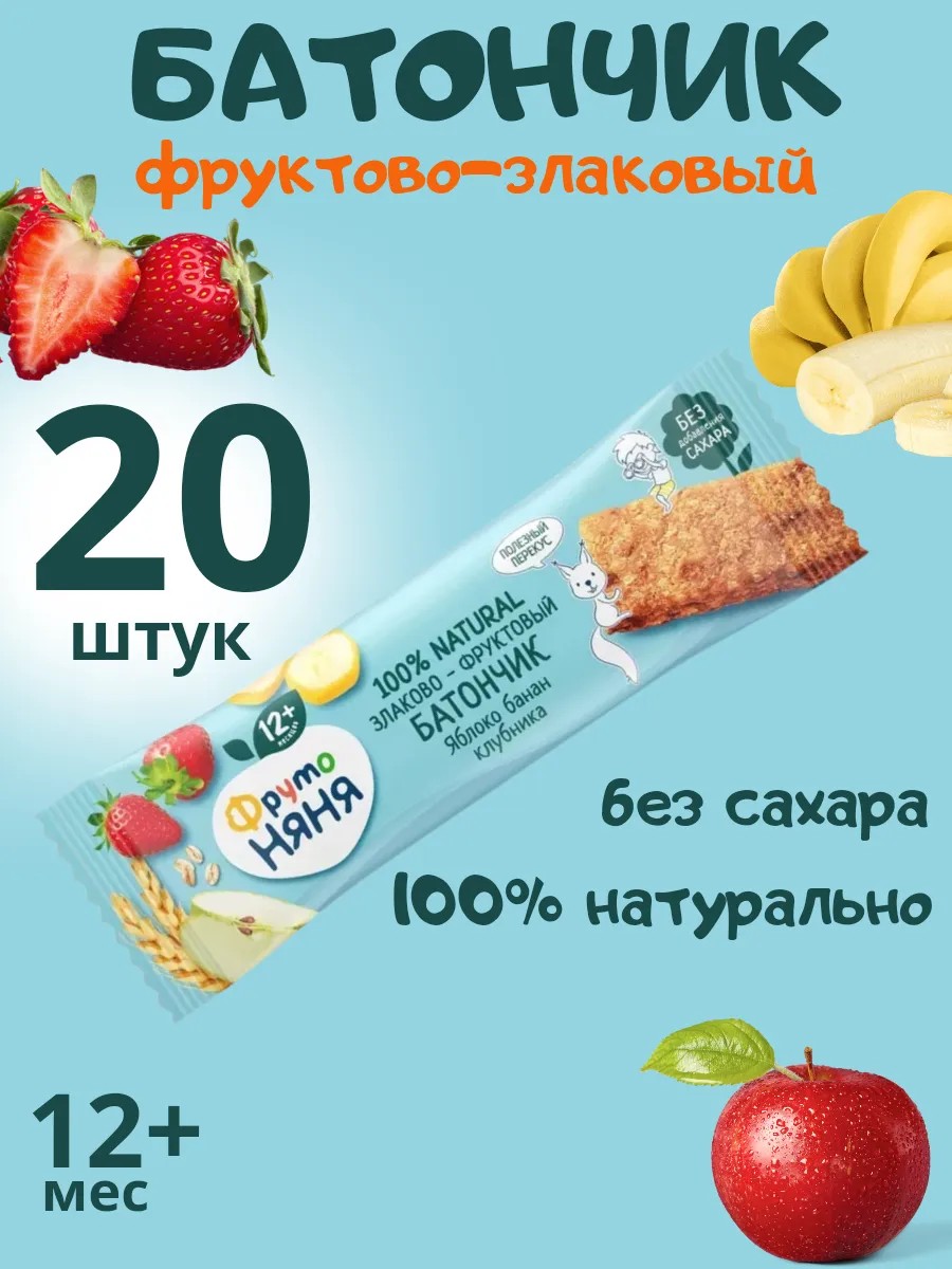 Новый злаково-фруктовый батончик «ФрутоНяня» — идеальный перекус для вашего малыша! Этот вкусный и сытный продукт содержит только натуральные ингредиенты, без добавления сахара, что делает его безопасным и полезным для здоровья вашего ребёнка.