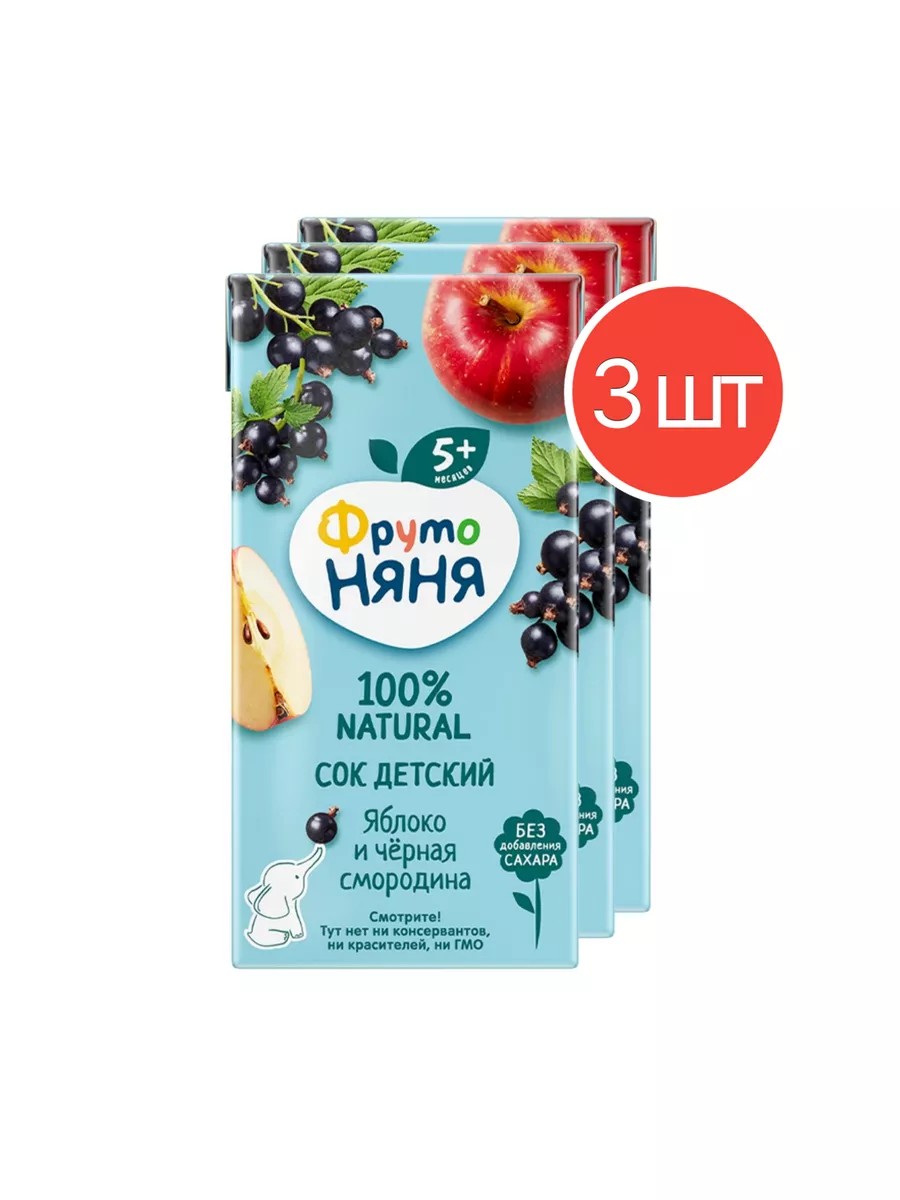 Сок из яблок и черной смородины, 200 мл 3 шт