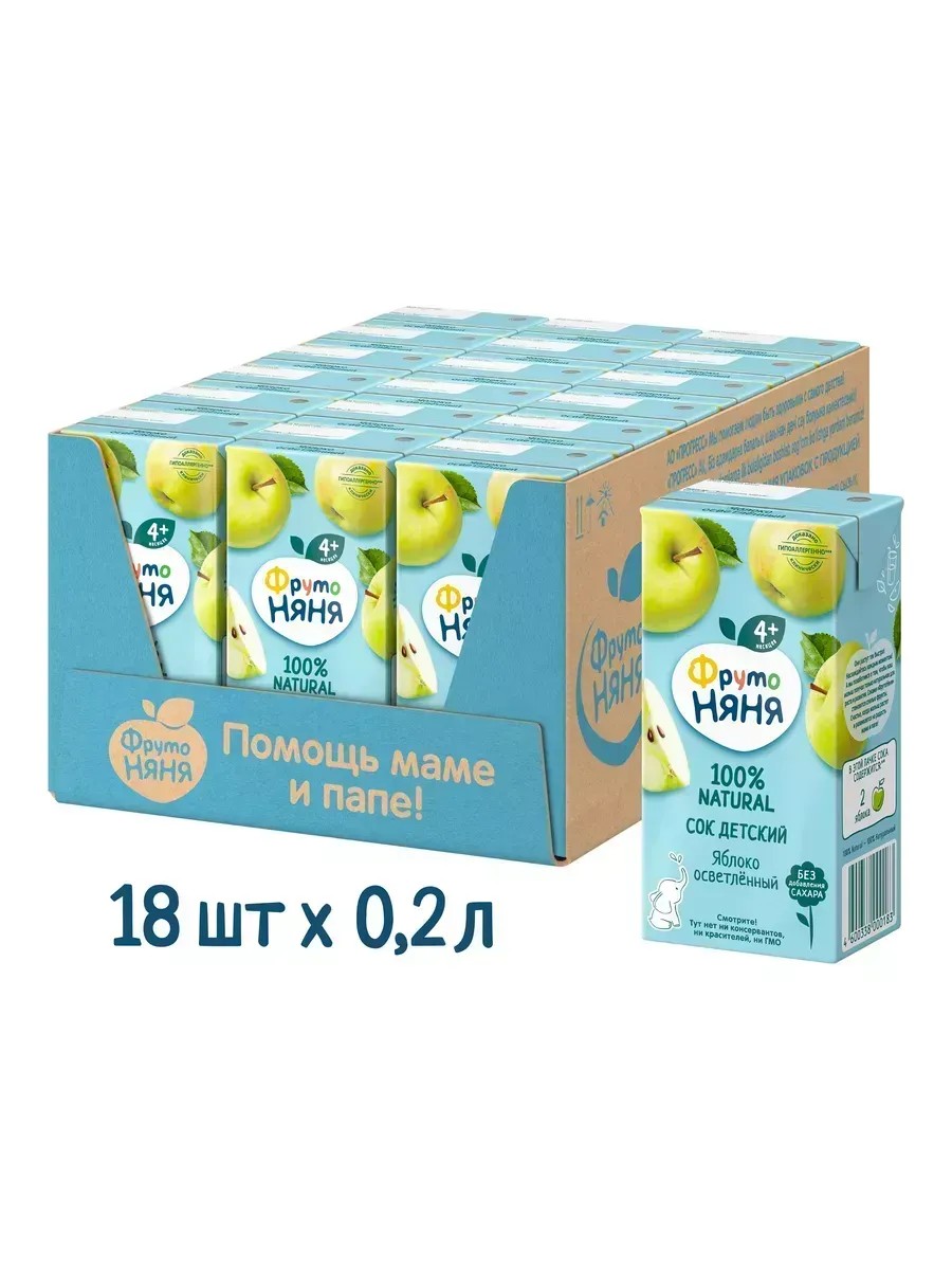 ФрутоНяня Сок яблочный осветленный, 200мл (18 шт)