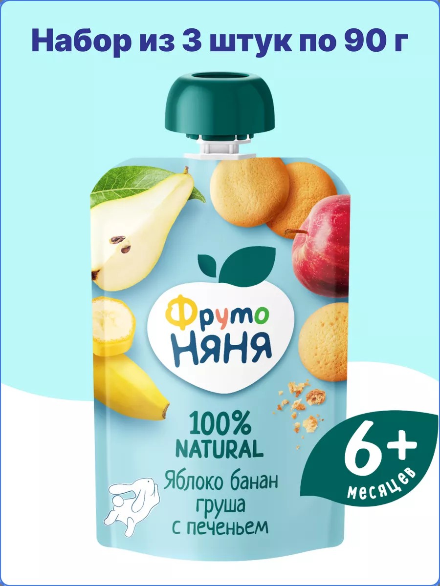 FRUTONYANYA fruit puree Apple, banana, and pear with cookies is a delicious and healthy snack that you can take with you, use on a walk, while traveling, or when visiting.