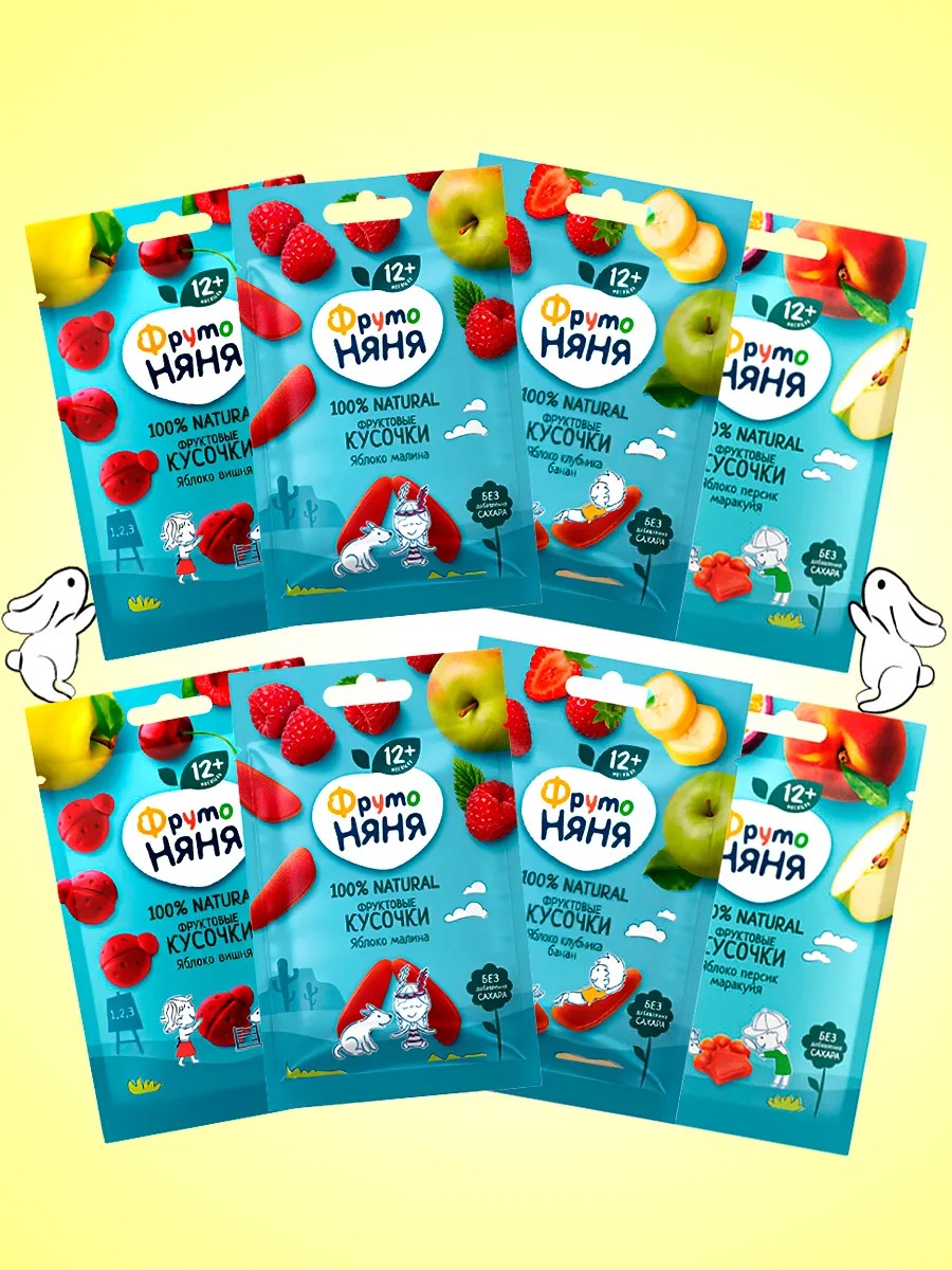 3.Кусочки фруктовые детские ФрутоНяня Яблоко и вишня с 12 месяцев, 15г - 2шт;