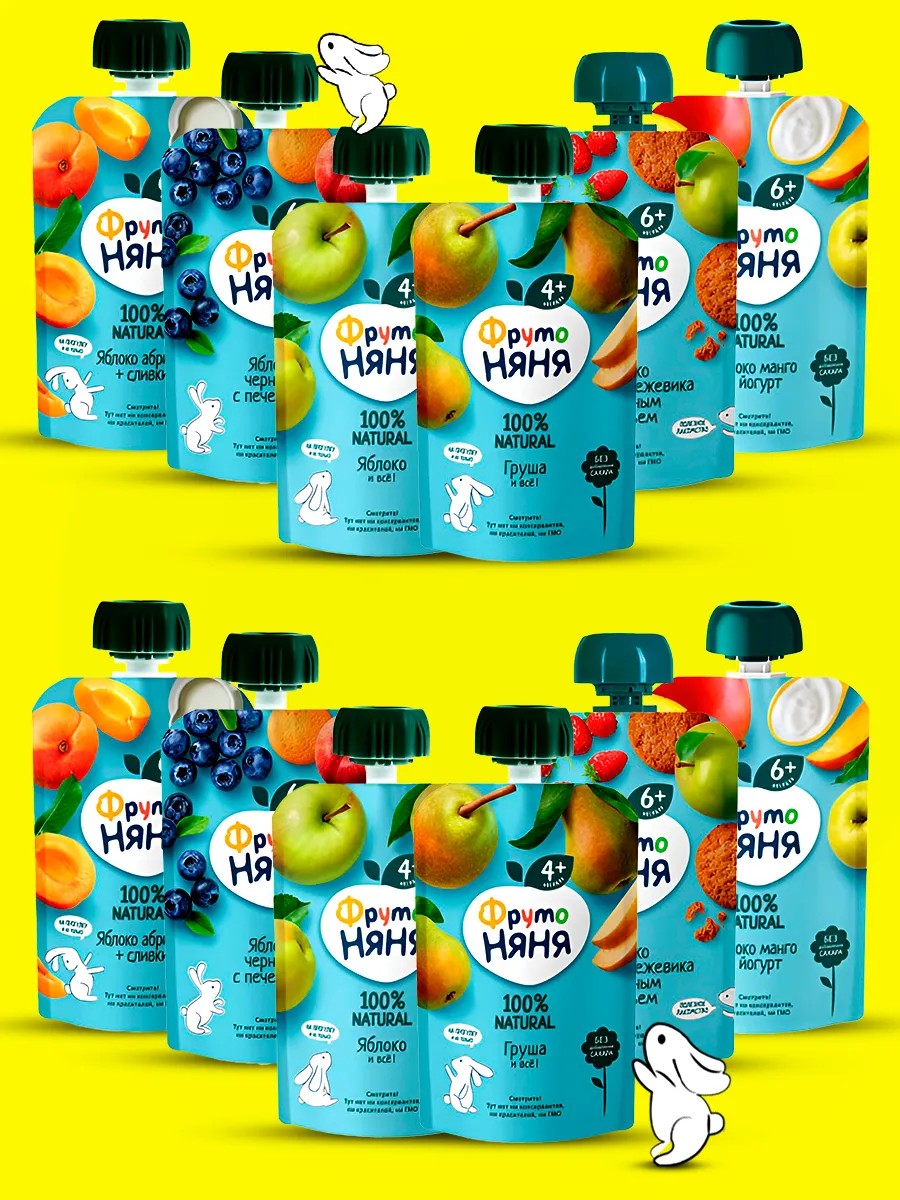 5․ Пюре фруктовое детское ФрутоНяня Яблоко, абрикос и сливки с 6 месяцев, 90г - 2шт;