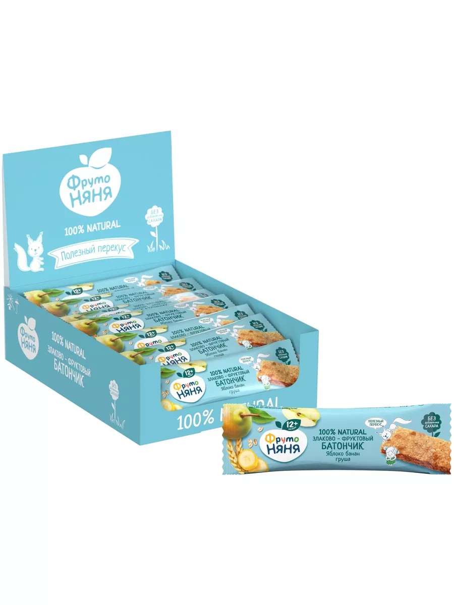 Злаково-фруктовый батончик «ФрутоНяня» — это сытный и вкусный перекус, который сочетает в себе пользу фруктов и питательность злаков! Он приготовлен только из натуральных ингредиентов без добавления сахара - это идеальное решение для перекуса вне дома. С злаково-фруктовым батончиком «ФрутоНяня» можно смело отправляться на долгие прогулки!