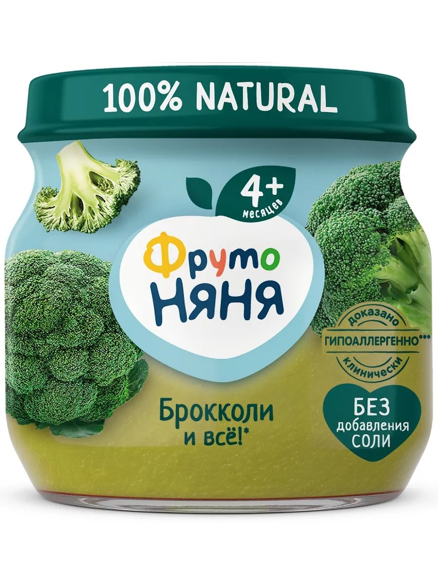 Пюре ФрутоНяня брокколи идеально подойдет для первого прикорма вашего малыша. О полезных веществах этого овоща можно говорить очень долго. Витамины, находящиеся в нем, улучшают свертываемость крови, положительно влияют на пищеварение, укрепляют иммунную и костную системы. Клинически доказано, что Пюре ФрутоНяня брокколи является гипоаллергенным. Поэтому мамы могут не беспокоится за реакцию организма малыша. В составе только органические продукты, без консервантов, красителей и ароматизаторов! Без добавления крахмала и соли.