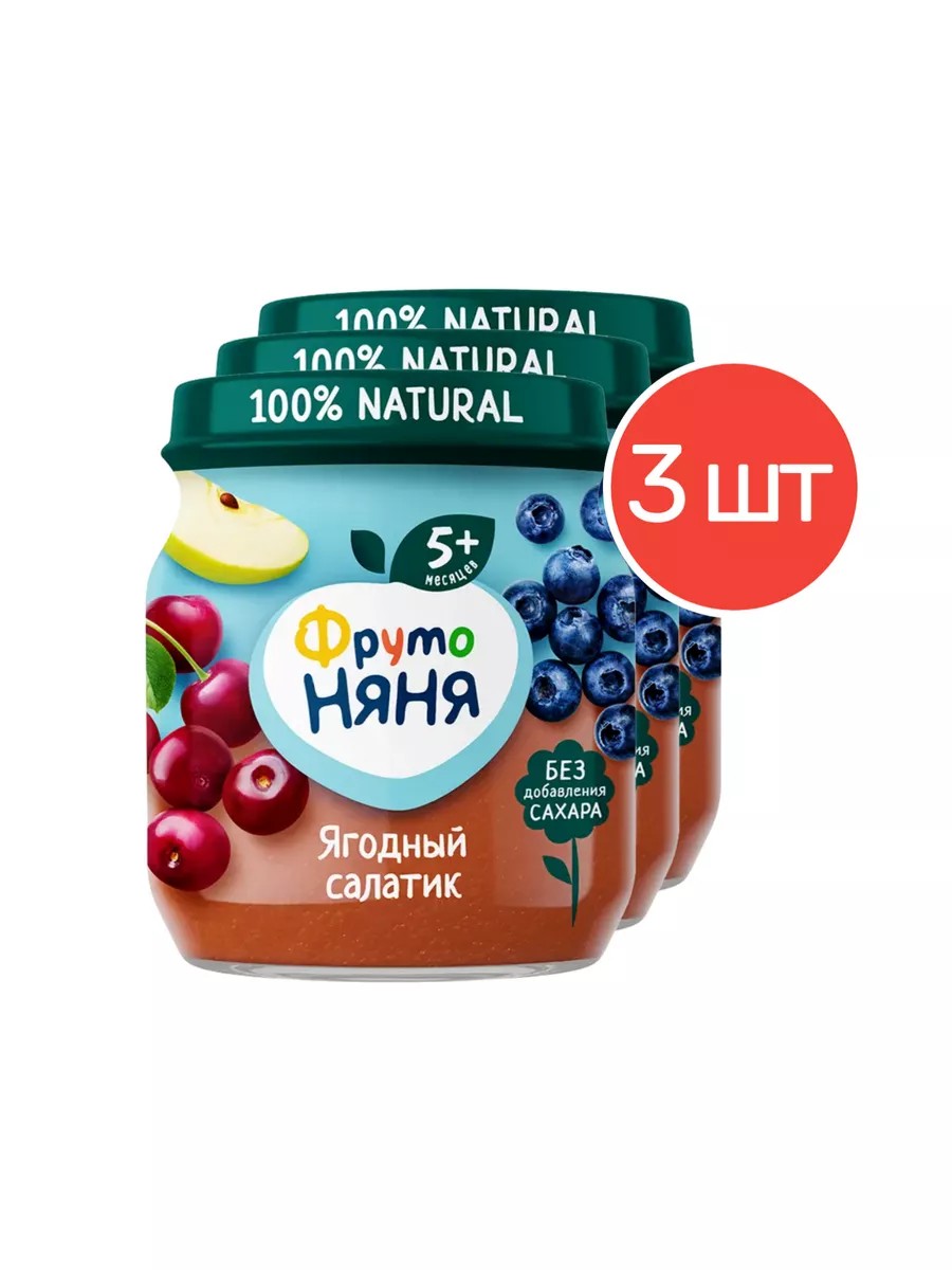 Детское пюре «Ягодный салатик» от «ФрутоНяни» подходит для прикорма малышей с 5 месяцев. В составе только 100% натуральные соки и пюре из спелых, сладких и полезных ягод и фруктов: яблок, черники, вишни, черноплодной рябины. Такое яркое сочетание вкусов поможет разнообразить рацион питания вашего ребенка, подарив ему заряд энергии и отличное настроение.