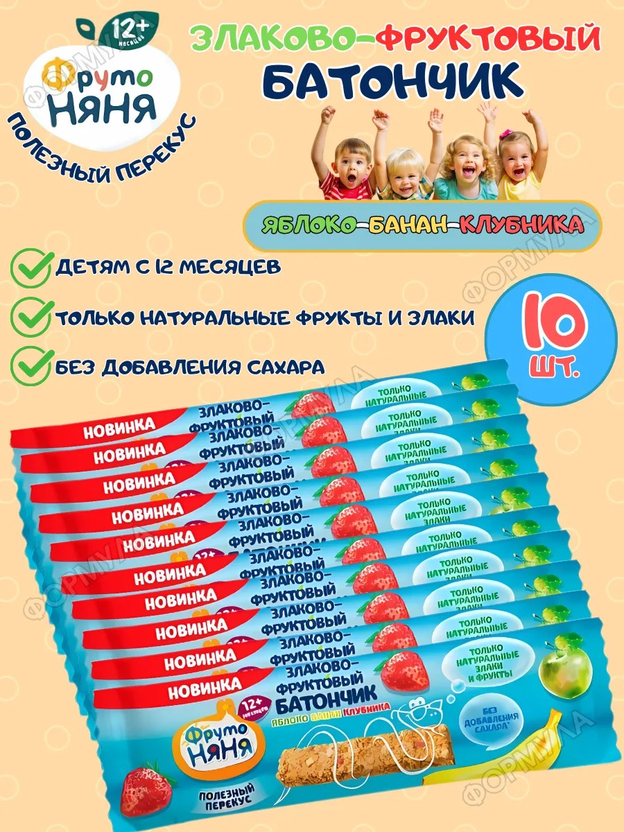 | Комплектация | фрутоняня батончик злаково-фруктовый яблоко-банан-клубника 25,0; 10 шт |